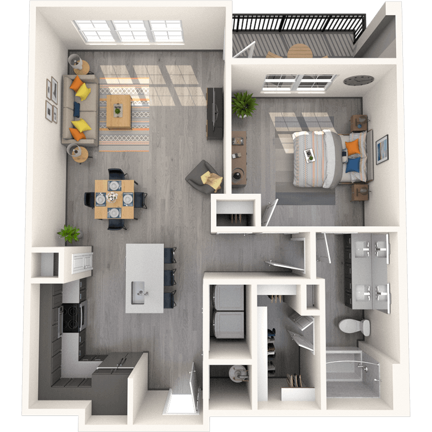 1 Dormitorio, 1 Baño, 744 pies²Disponible AhoraGalería del Modelo