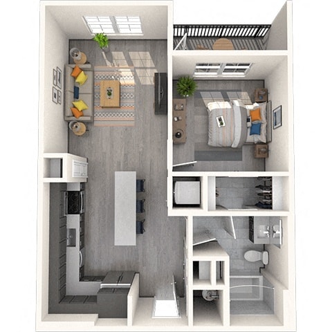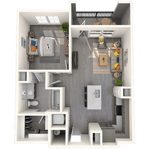 Modelo de apartamento: A1 1X1 678-696 SFDesde $1,1461 Dormitorio, 1 Baño, 678 sq ftDisponible Ahora![]()