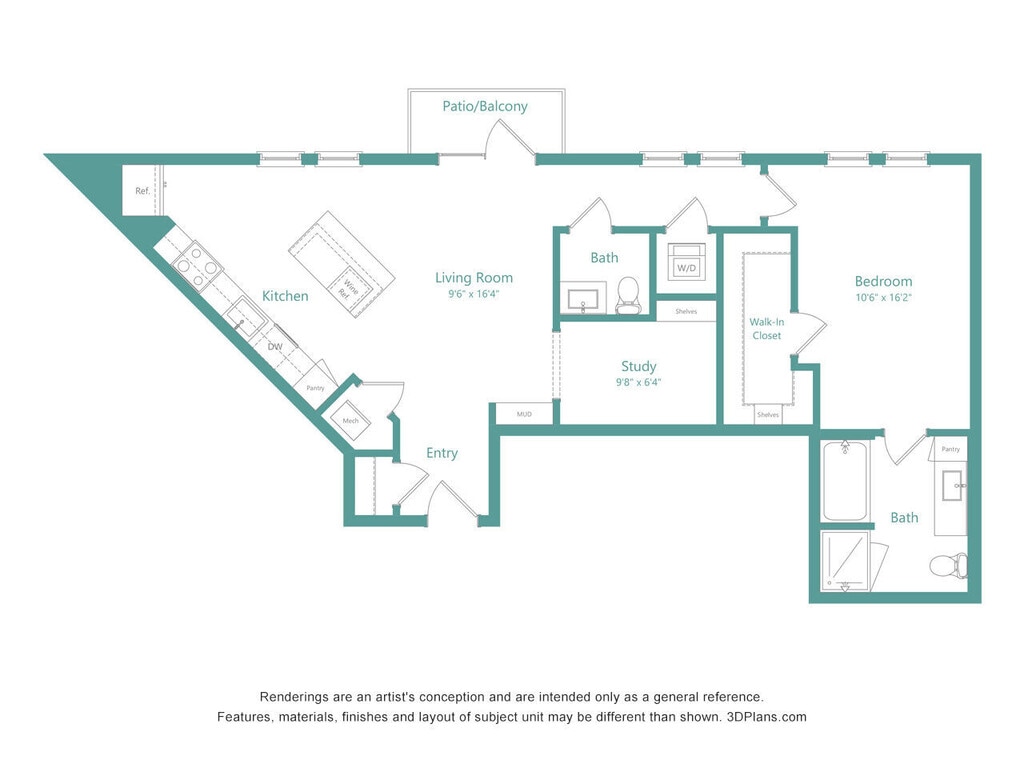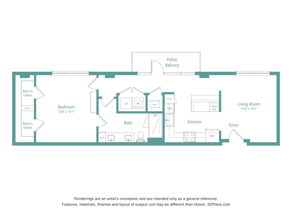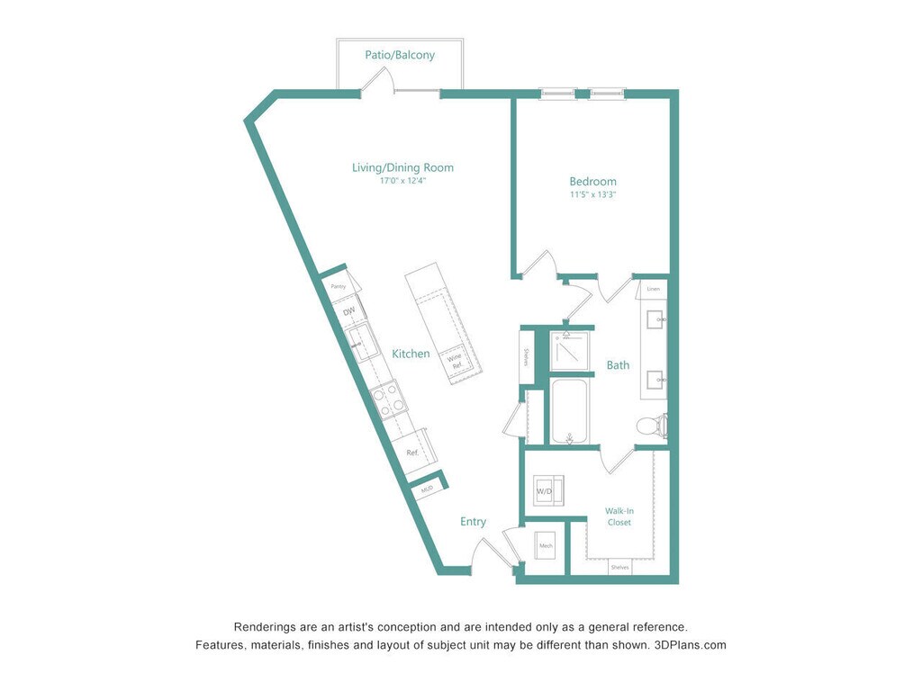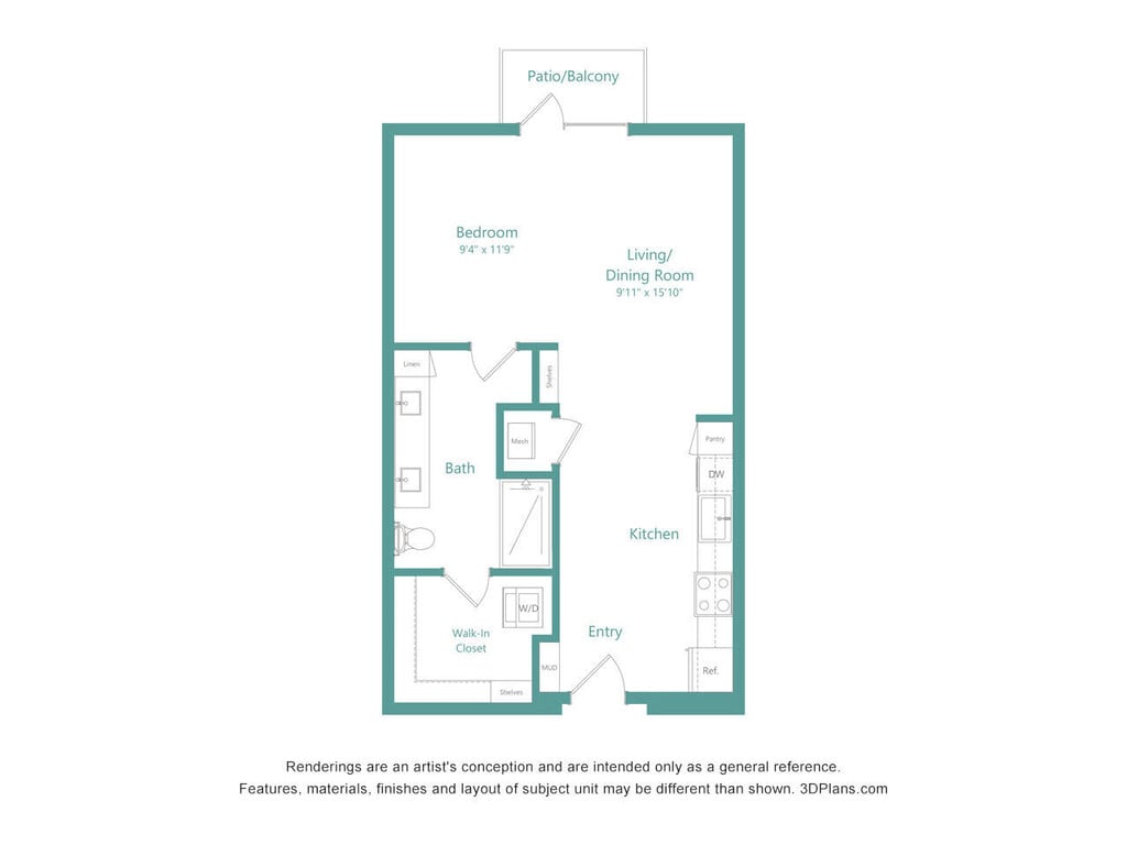 Estudio, 1 Baño, 587 pies²Galería del Modelo