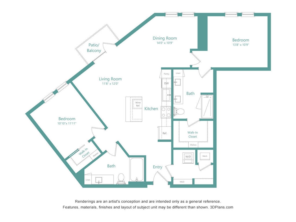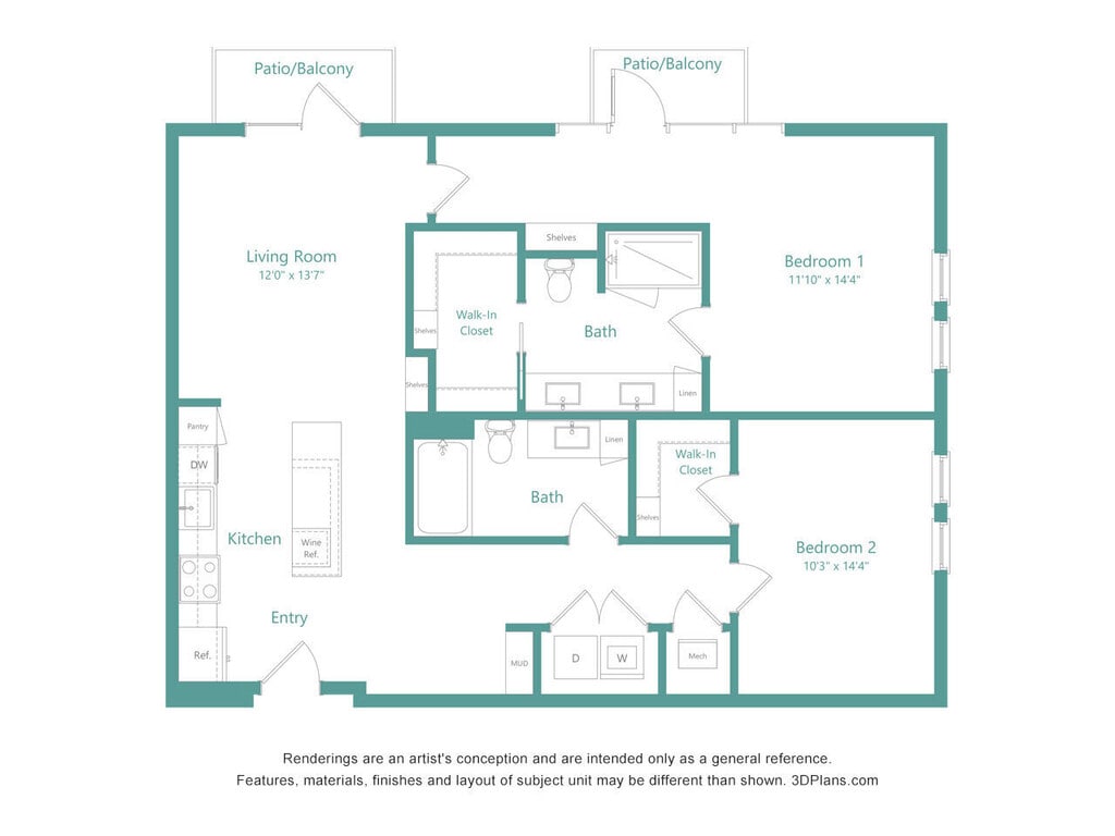 A14 - Plano 2 Unidad de apartamento: 135Modelo de apartamento: A14$2,2401 Dormitorio, 1 Baño, 977 sq ftDisponible AhoraPlano: A10