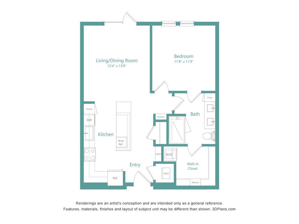 Estudio, 1 Baño, 659 pies²Galería del Modelo