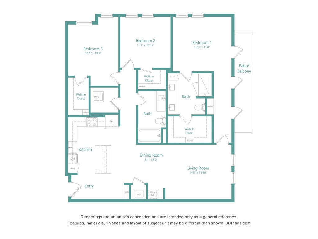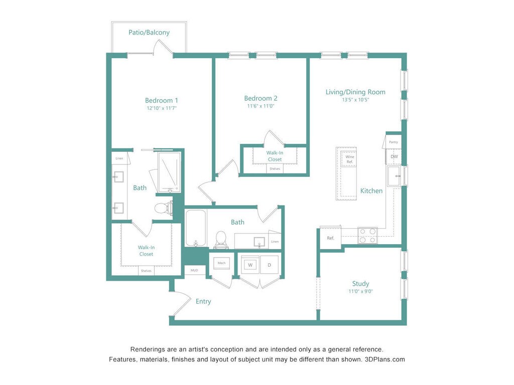 Modelo de apartamento: A3a$1,5111 Dormitorio, 1 Baño, 750 sq ftDisponible December 25, 2025![]()