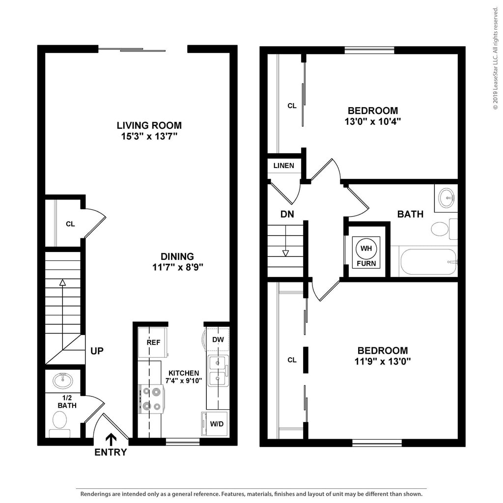2 Dormitorios, 1 Baño, 923 pies²Disponible AhoraGalería del Modelo