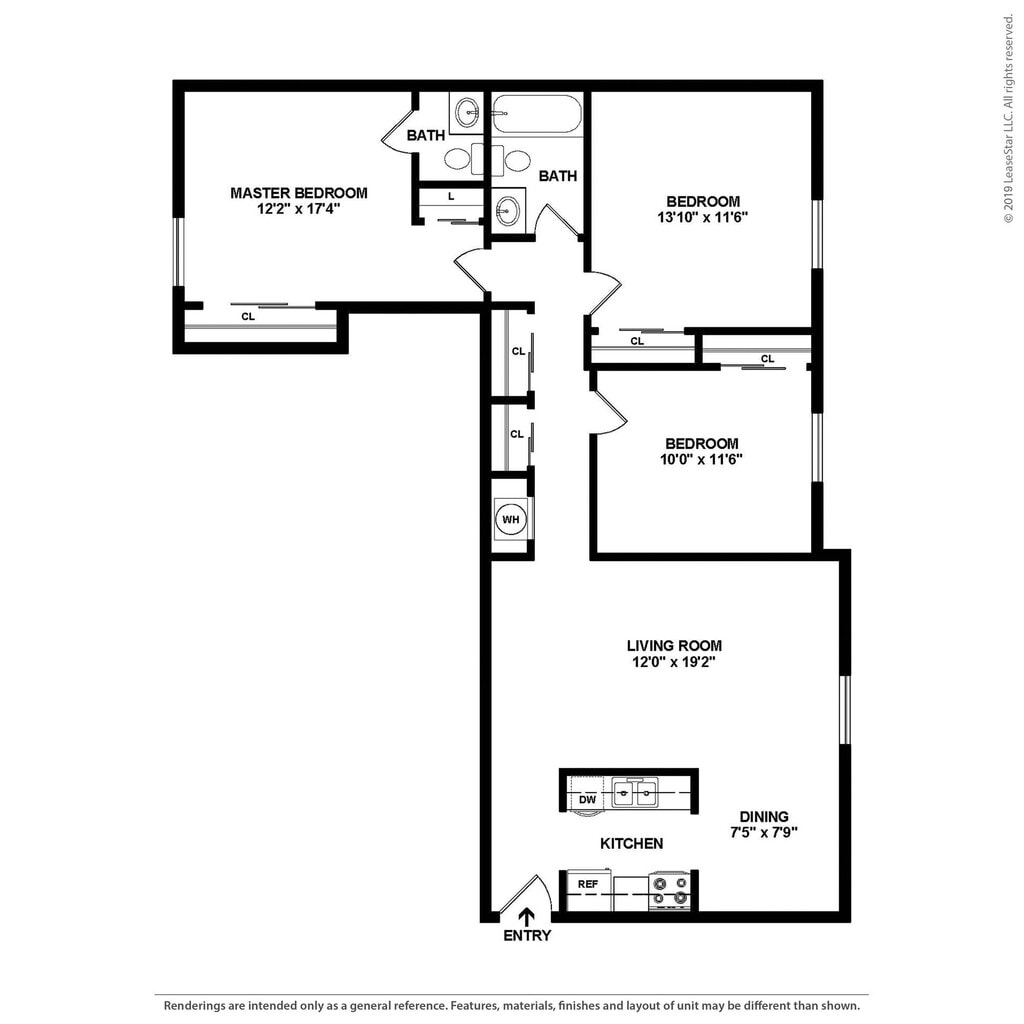 Modelo de apartamento: 2x1WDDesde $8842 Dormitorios, 1 Baño, 849 sq ftDisponible Ahora![]()