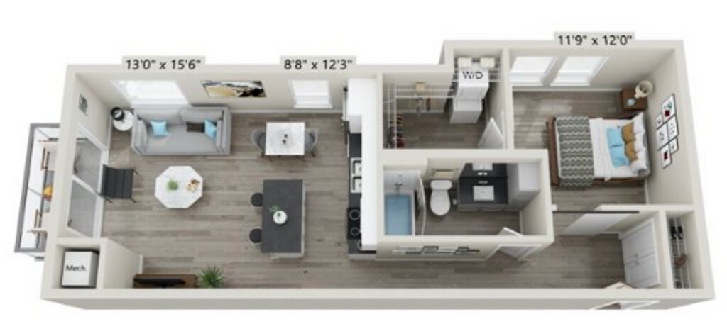 J - Plano 1 Unidad de apartamento: 302Modelo de apartamento: J$1,7151 Dormitorio, 1 Baño, 748 sq ftDisponible April 1, 2026![]()