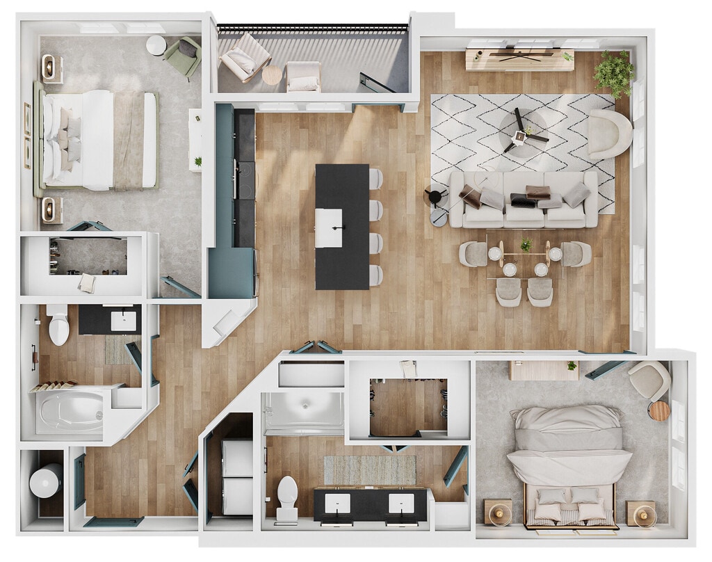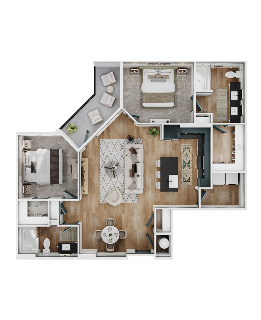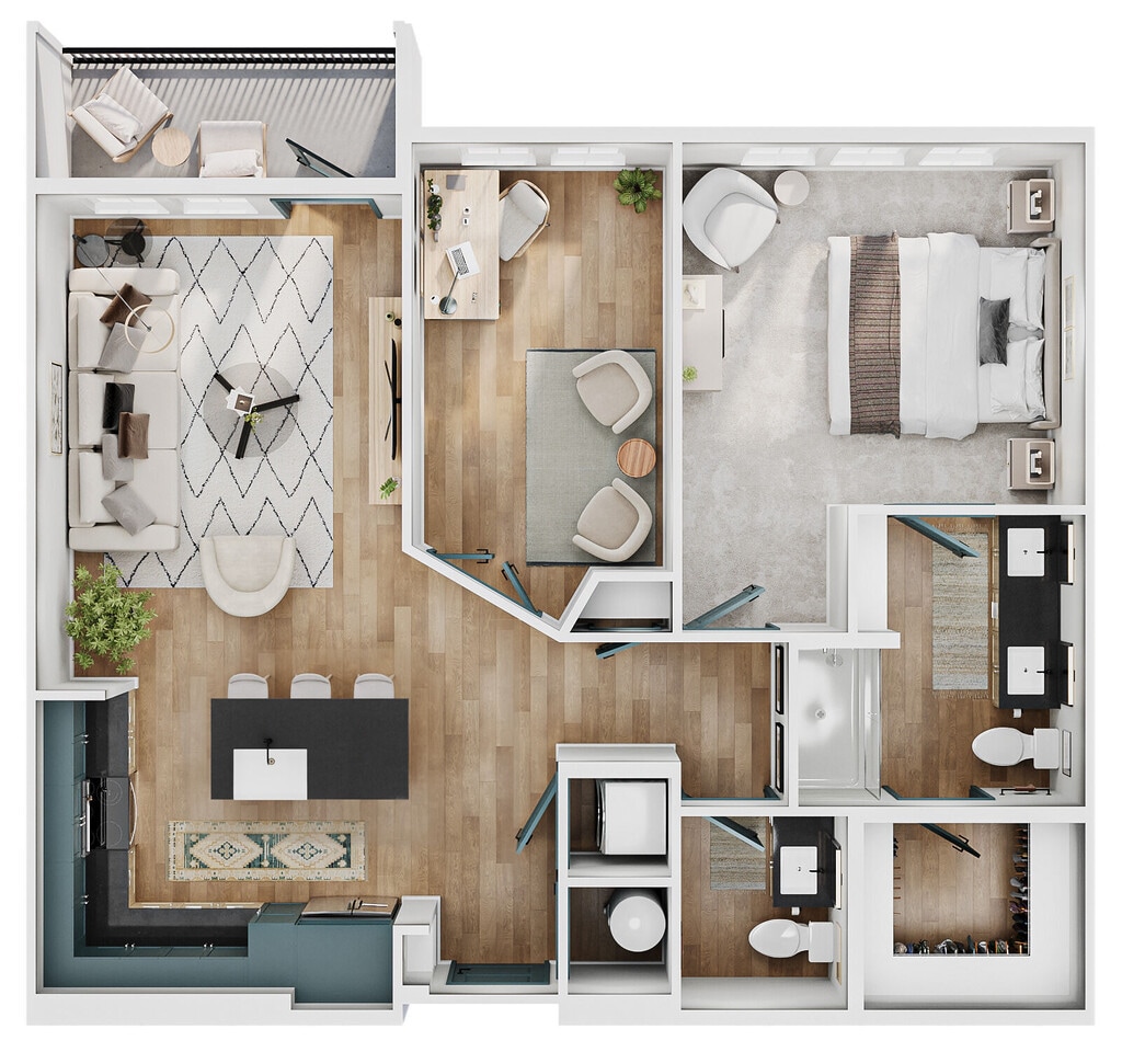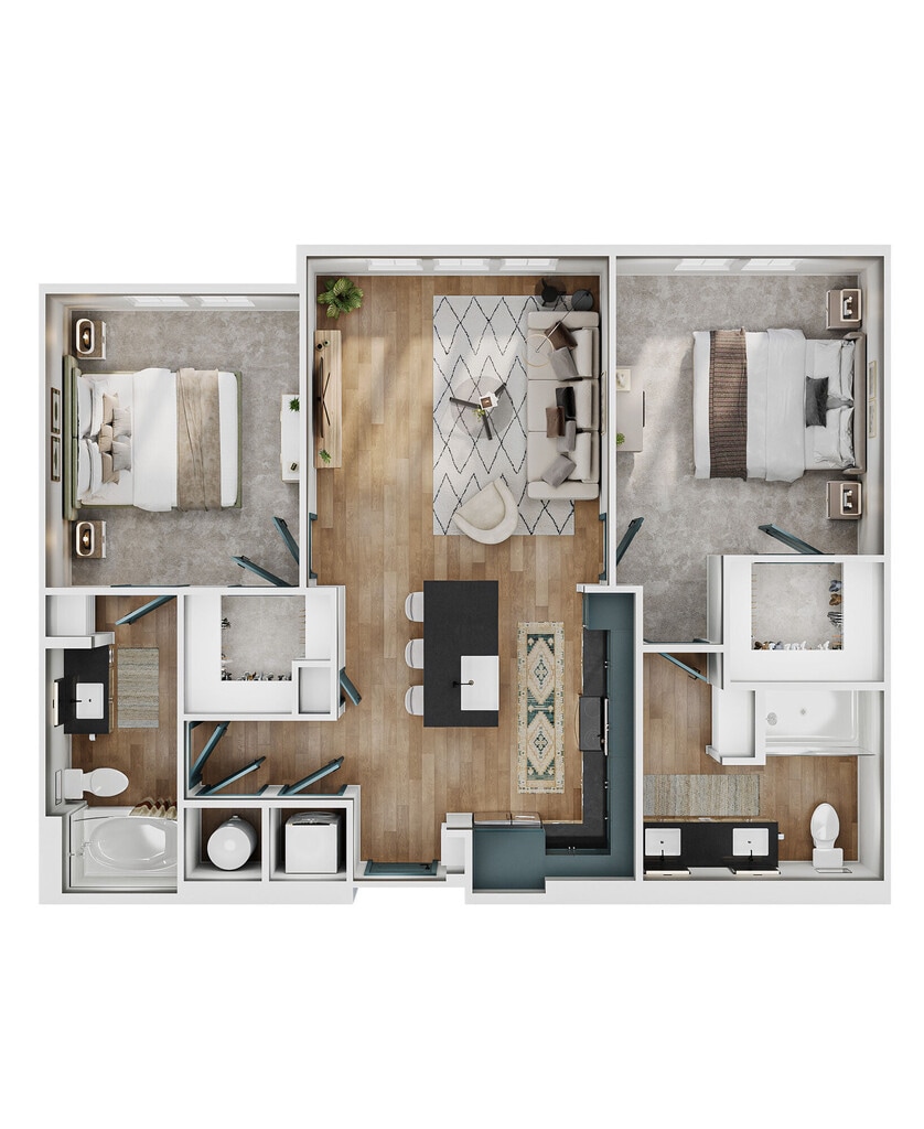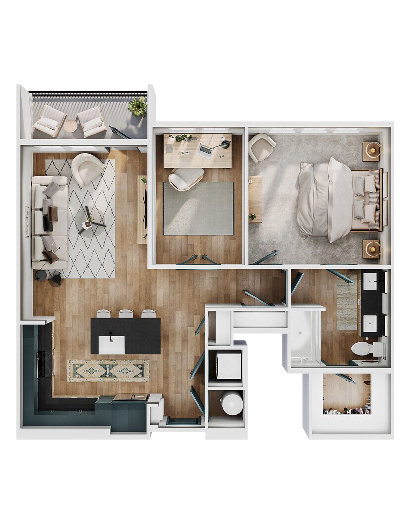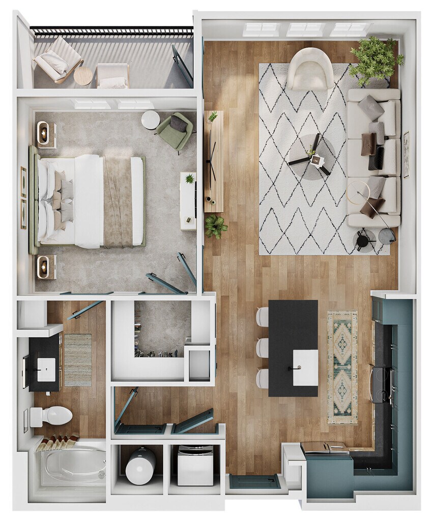 Modelo de apartamento: A2Desde $1,7251 Dormitorio, 1 Baño, 735 sq ftDisponible March 16, 2026![]()