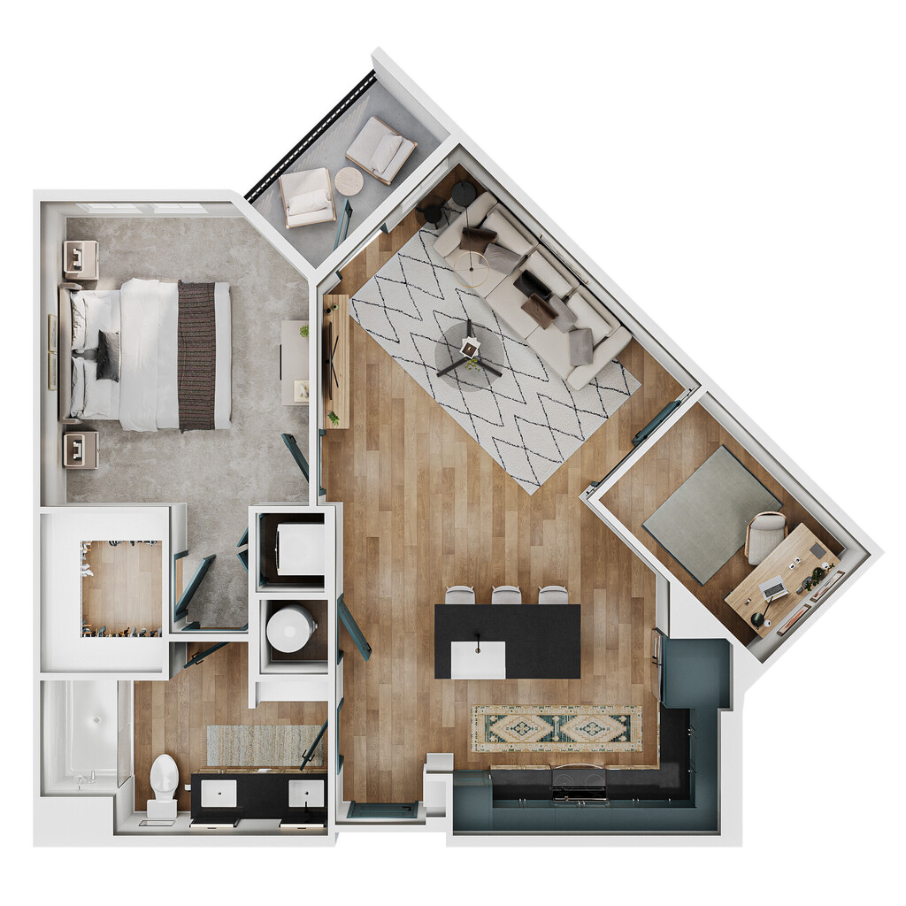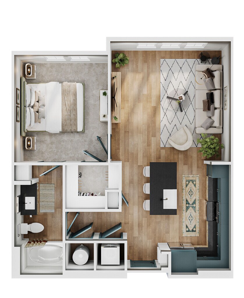 Modelo de apartamento: A1Desde $1,6601 Dormitorio, 1 Baño, 636 sq ftDisponible March 16, 2026![]()