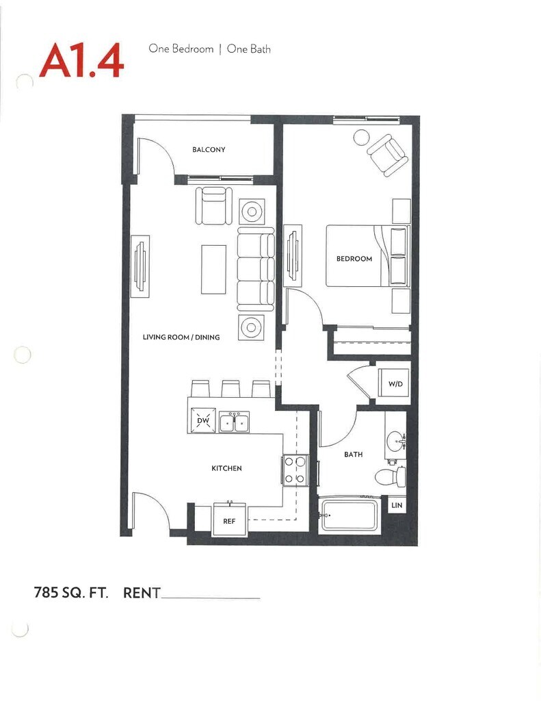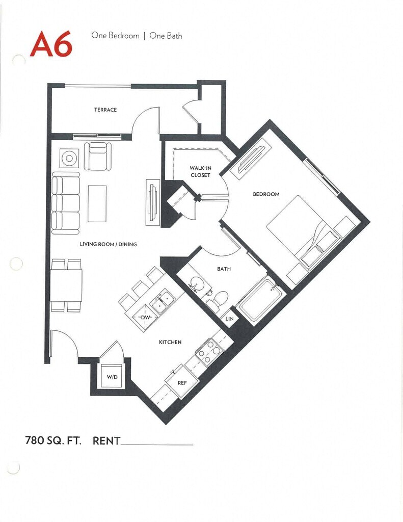 A5 - Plano 1 Unidad de apartamento: 433Modelo de apartamento: A5$2,6431 Dormitorio, 1 Baño, 780 sq ftDisponible December 27, 2025Plano: A7