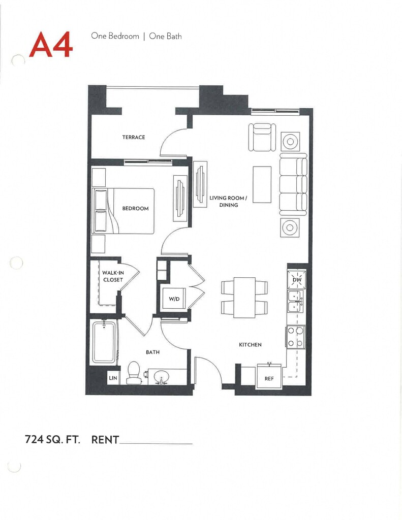 Modelo de apartamento: A4Desde $2,5901 Dormitorio, 1 Baño, 724 sq ftDisponible AhoraLos planos de la planta son una interpretación artística. Todas las dimensiones son aproximadas. Los tamaños o el detalle del producto real y sus especificaciones pueden variar. No todas las características están disponibles en todos los hogares para rentar. Los precios y la disponibilidad están sujetos a cambios. El alquiler que se muestra es mensual. Se pueden aplicar ciertos cargos, por ejemplo, entrega de paquetes, recolección de basura, agua, servicios, etc. Depositos varian. Consulta a un representante para conocer detalles.