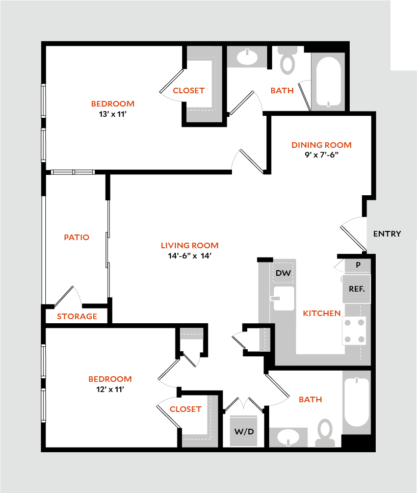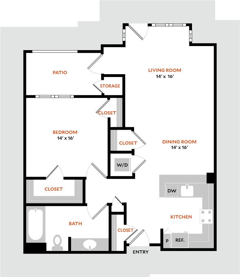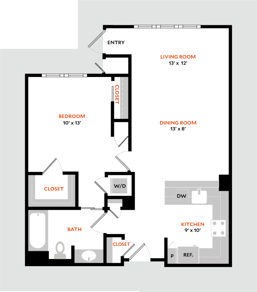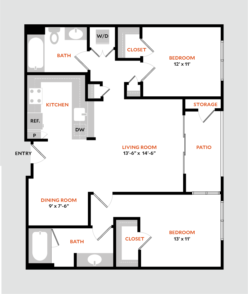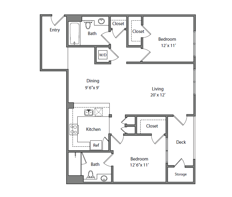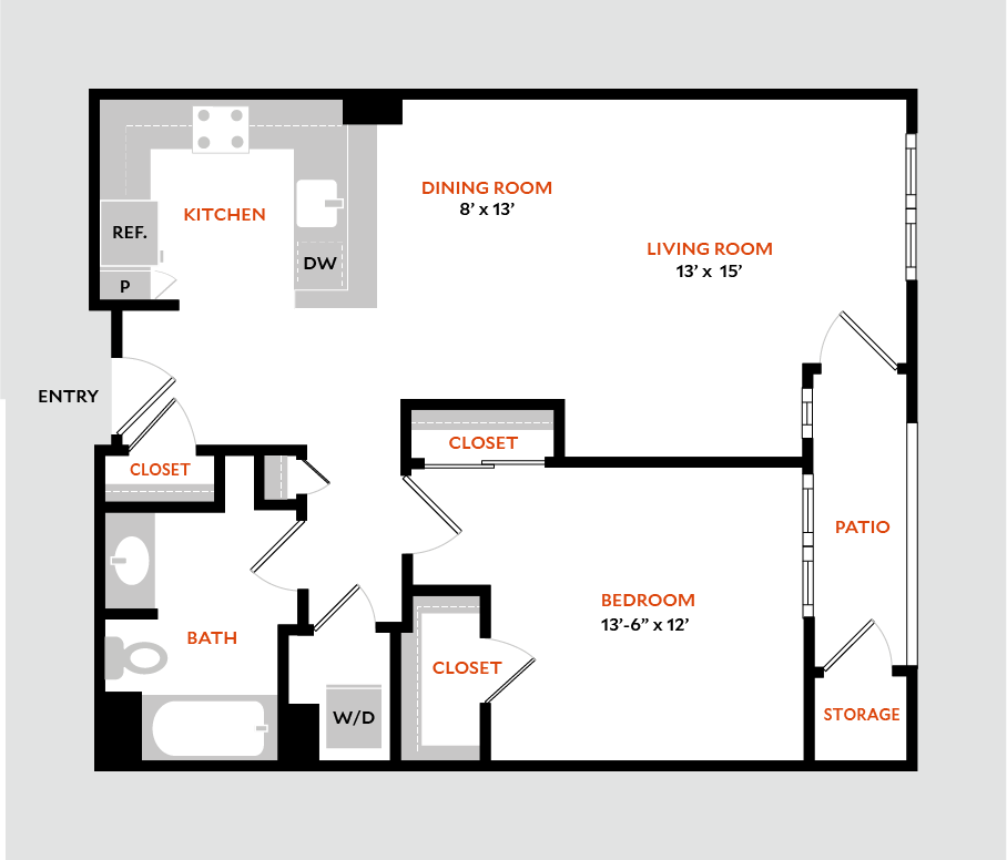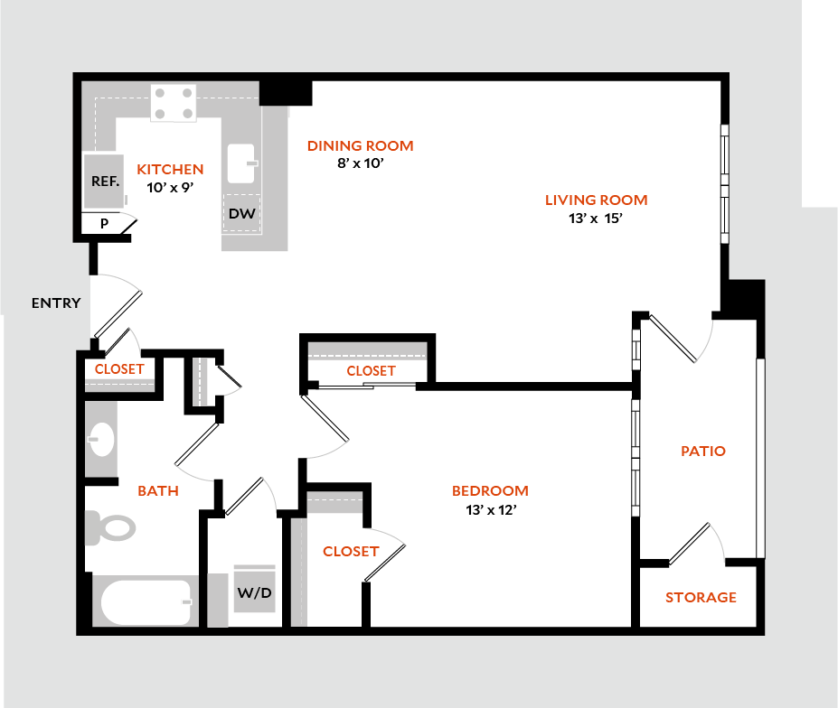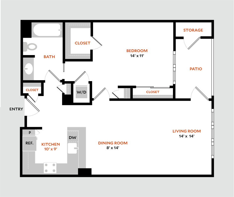 1 Dormitorio, 1 Baño, 900 pies²Disponible AhoraGalería del Modelo