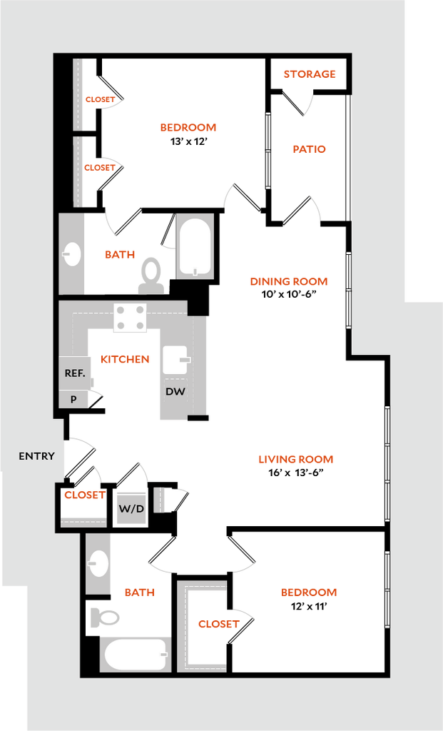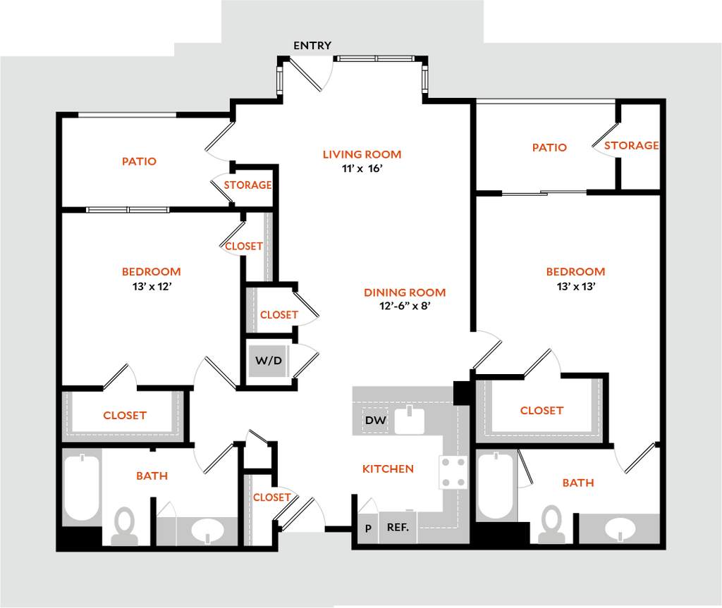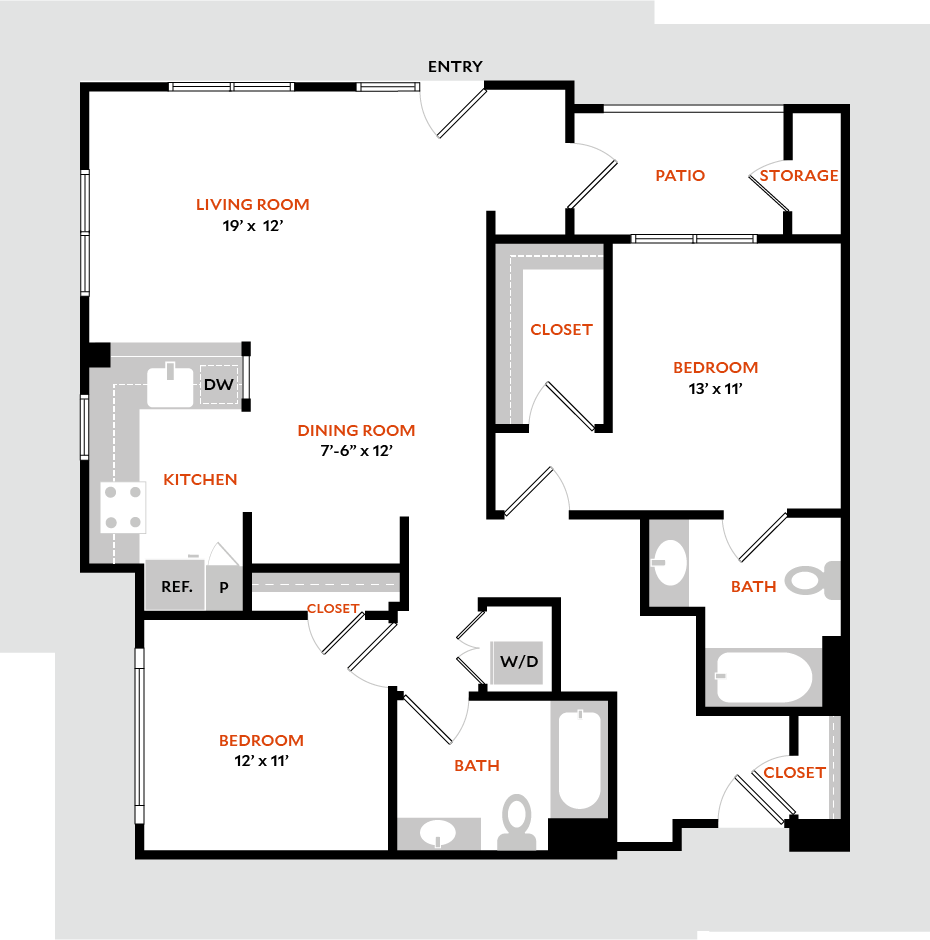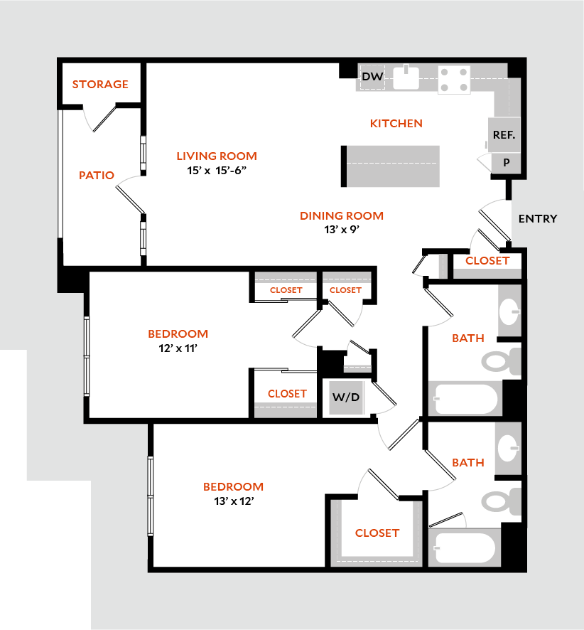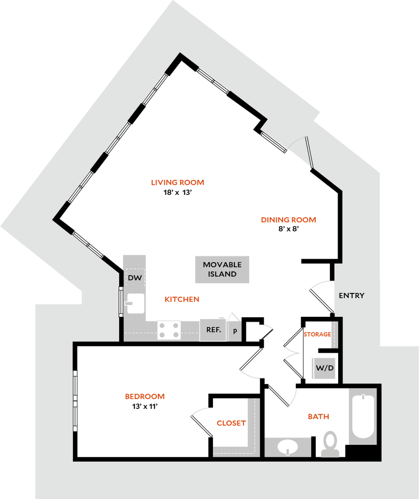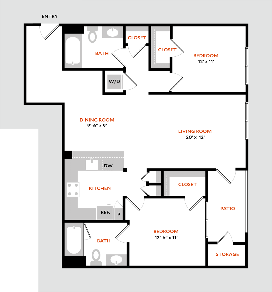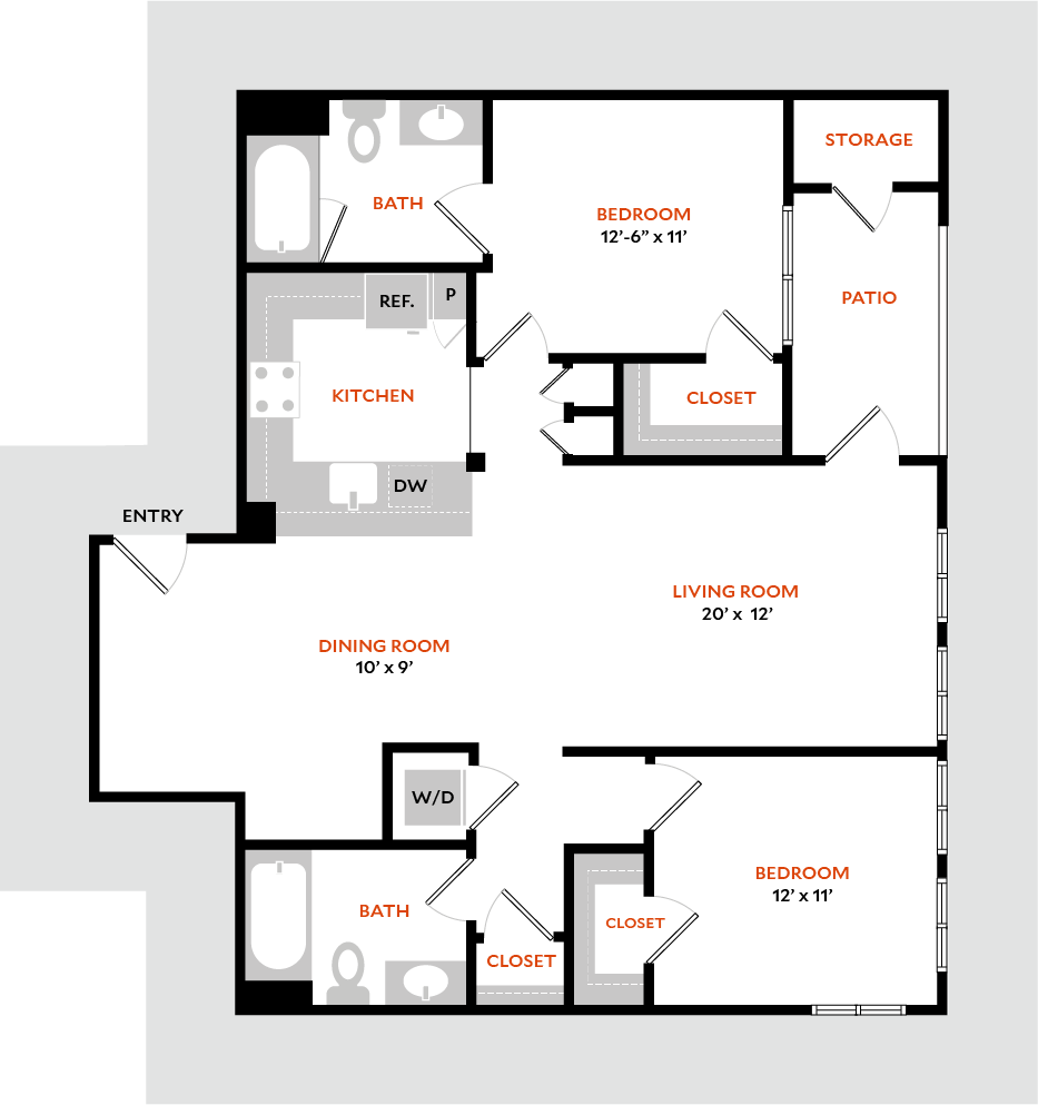 1 Dormitorio, 1 Baño, 900 pies²Disponible AhoraGalería del Modelo