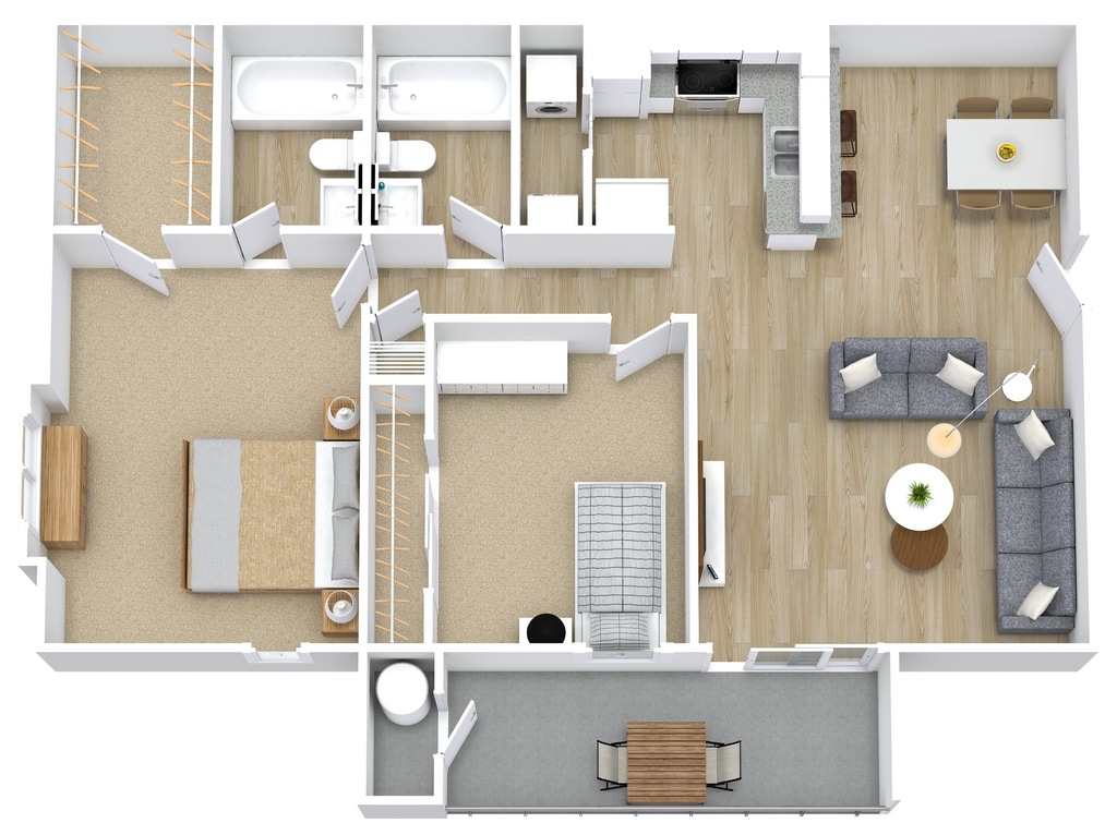 Modelo de apartamento: B3Desde $1,4052 Dormitorios, 2 Baños, 1100 sq ftNo Disponible![]() - B3 - Plano 1