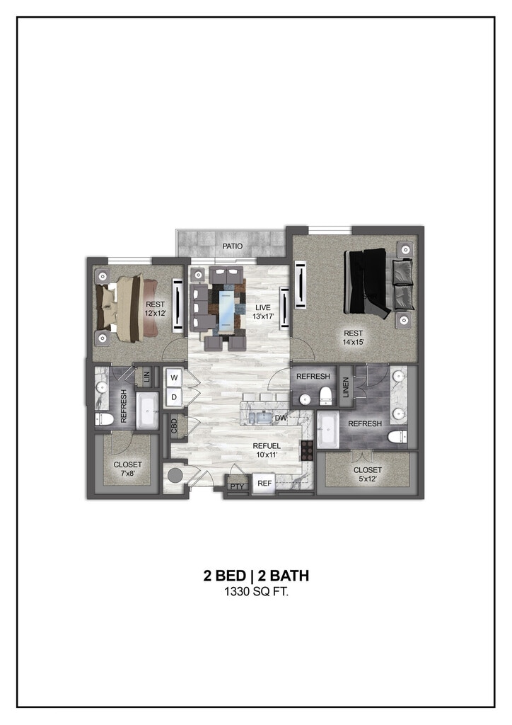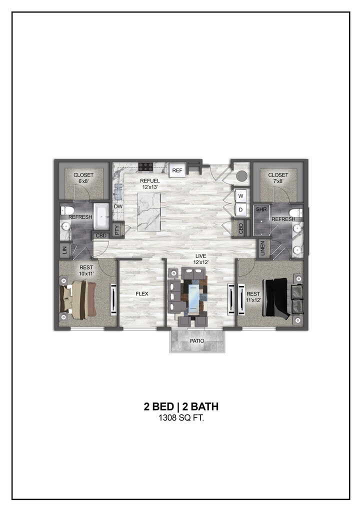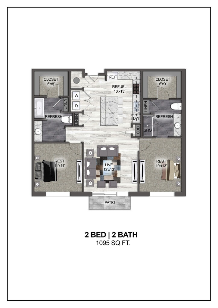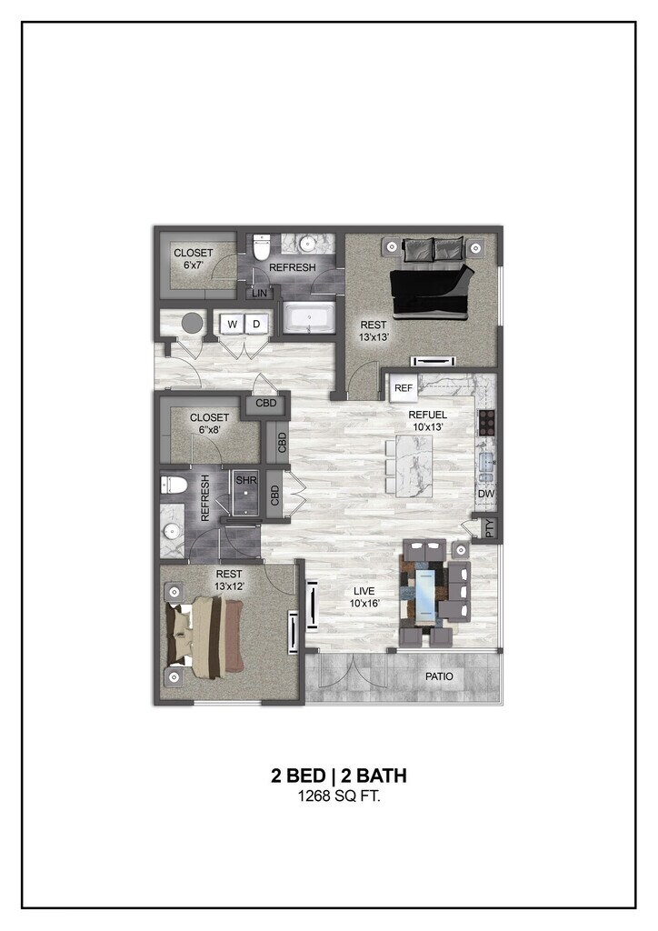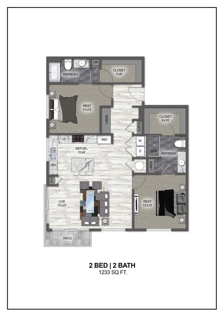 Unidad: 2212 - Plano Unidad de apartamento: 2318Modelo de apartamento: A3$1,4631 Dormitorio, 1 Baño, 688 sq ftDisponible AhoraPlano: A6