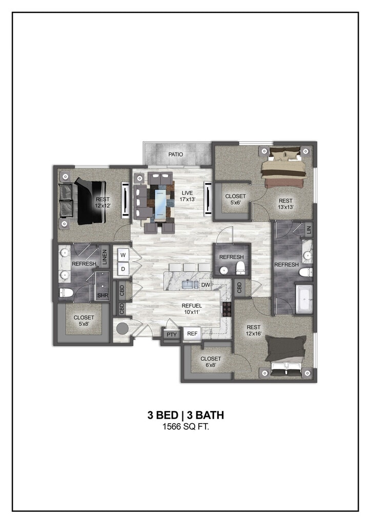 August 23, 2022We have lived in a 3-bedroom apartment at Madera at LeftBank for a year now. Our unit has THE BEST kitchen and THE BEST appliances we’ve ever had in an apartment: the dishwasher is quiet, the fridge is huge, full-size washer and dryer, the wine fridge is silent, and the furnace doesn’t sound like a freaking freight train. There are linen closets in both bathrooms and in the hallway, and each bedroom has a large walk-in closet. LOTS of storage. The focus on the wonderful kitchen results in a very ...small living room area. The floor plan diagram shows a couch, loveseat, and two armchairs in the space, but they must be doll furniture! We got a small studio couch and one armchair into the space. It’s light, cozy, and pleasant, but don’t expect to move in with a large sectional and a 75” television. Add $65.00/mo for mandatory Valet Trash service and amenity fees. You’ll either love it or hate it. Our building has trash chutes on each floor, so we wish we didn’t have to pay for it. There is gated parking for residents, but spaces are hard to come by if you come home later in the evening. Private garages are scarce and expensive. Madera Residential seems committed to upgrading the property, and we hope they will add COVERED CARPORTS in the gated areas to their plan. Still, we are happy that we chose Madera at LeftBank, even though it’s more expensive than some other complexes. The location is perfect for us, the area is very walkable, and we can enjoy the West 7th/Cultural District lifestyle without all the noise. We have only one car, and depending on your work locations, you may be able to get away with that too.Property Manager Responded