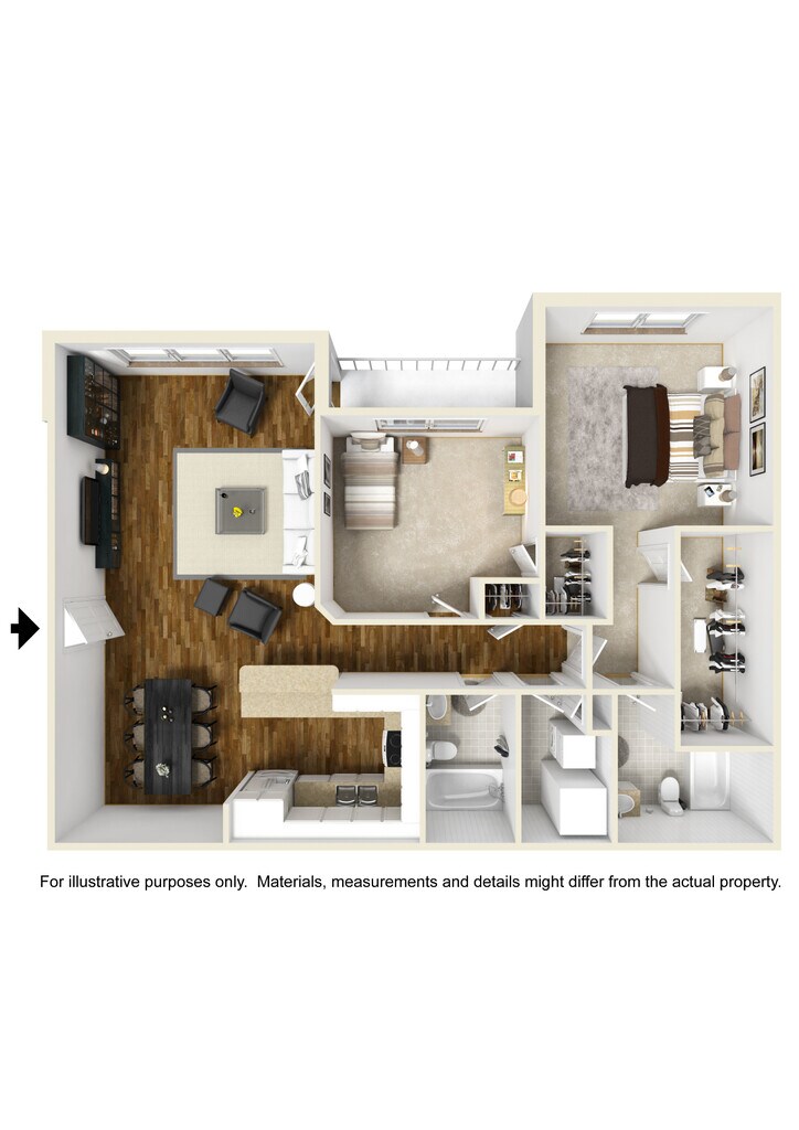 1 Dormitorio, 1 Baño, 815 pies²Galería del Modelo