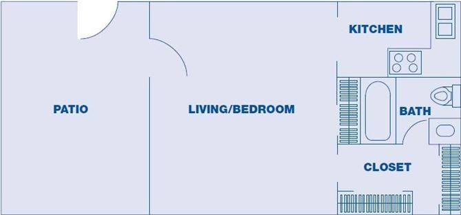Modelo de apartamento: StudioEstudio, 1 Baño, 400 sq ftNo DisponibleStudio - Plano 1 1 Dormitorio