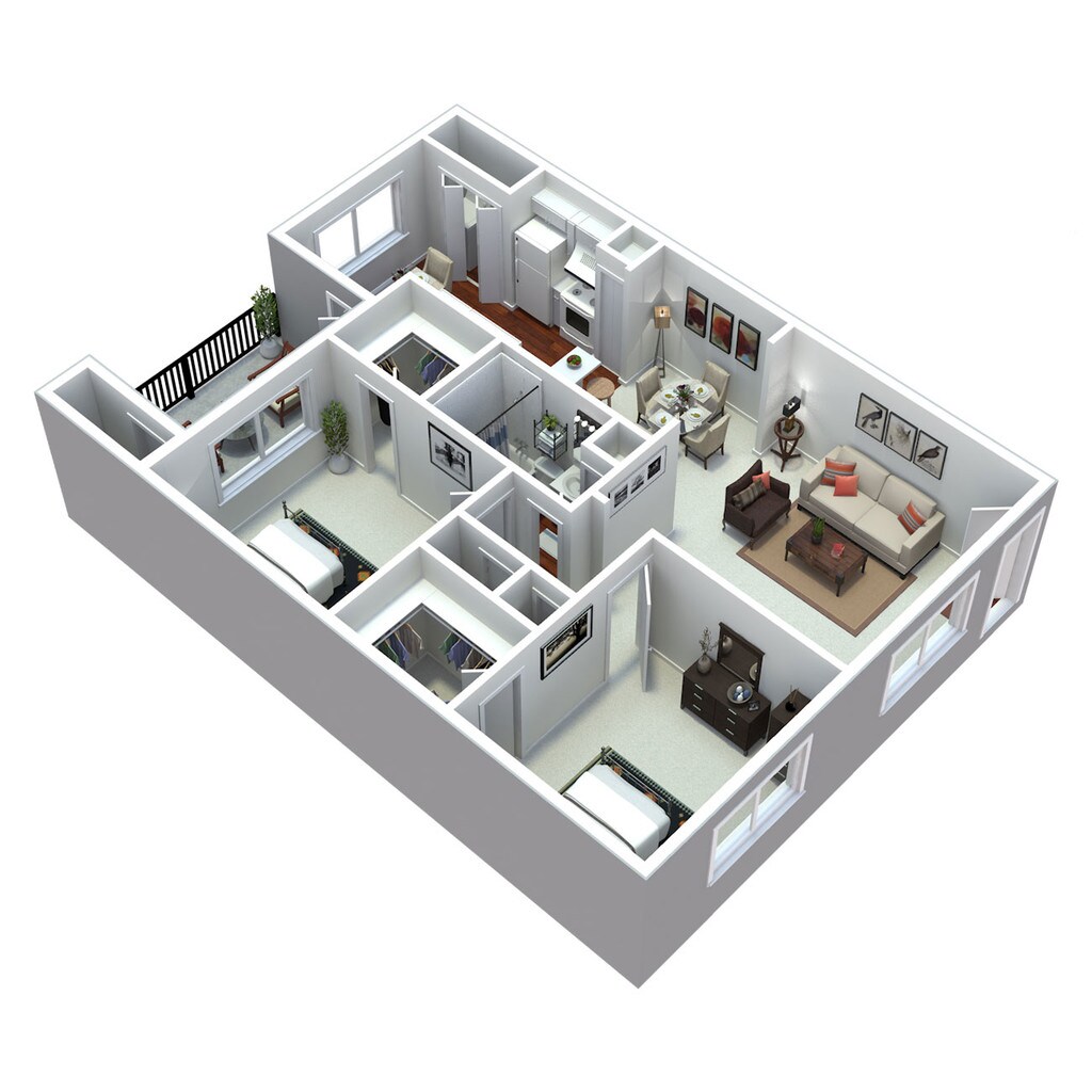 Modelo de apartamento: The CypressDesde $1,2602 Dormitorios, 2 Baños, 1099 sq ftDisponible Ahora![]()