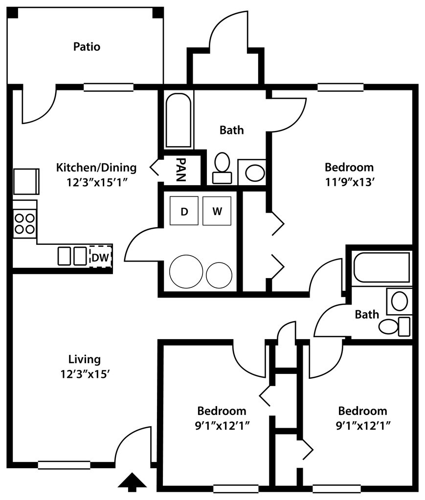 3 Dormitorios, 2 Baños, 1181 pies²Galería del Modelo