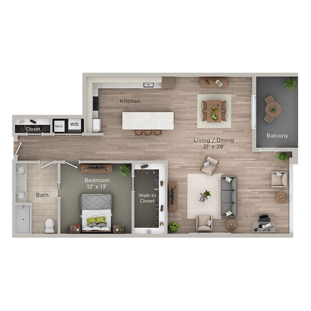 Modelo de apartamento: The Carneal1 Dormitorio, 1 Baño, 942 sq ftDisponible Ahora![]()