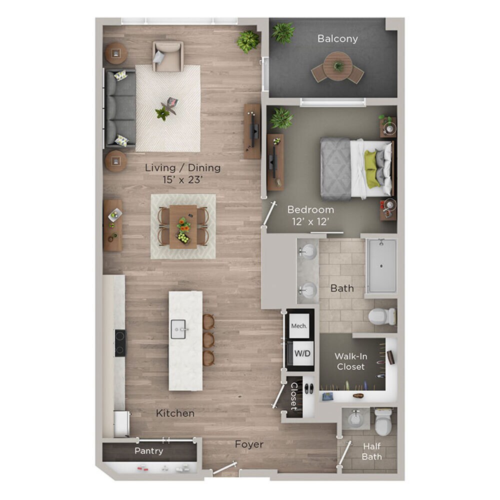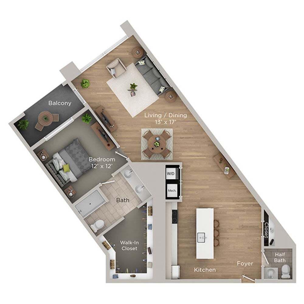 1 Dormitorio, 1.5 Baños, 1382 pies²Disponible AhoraGalería del Modelo