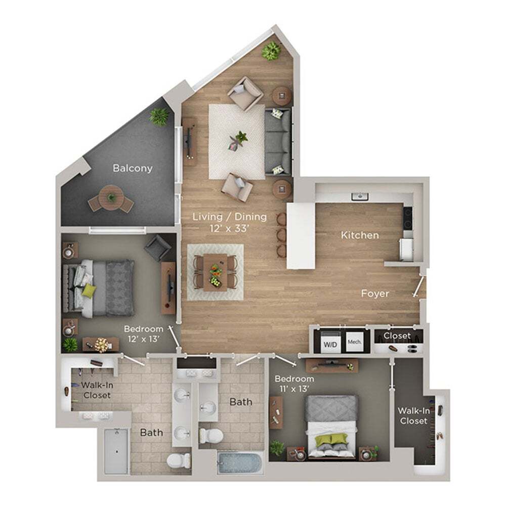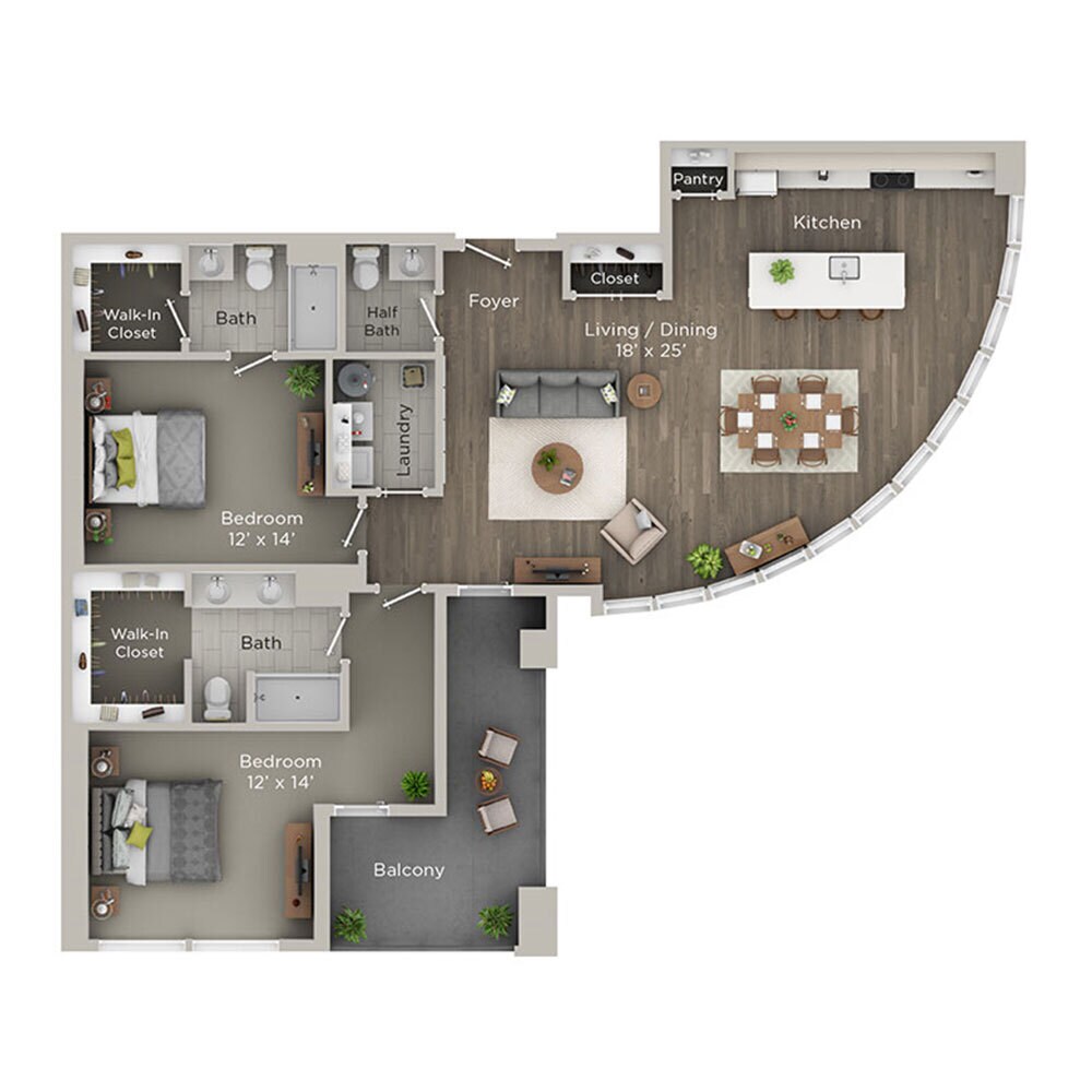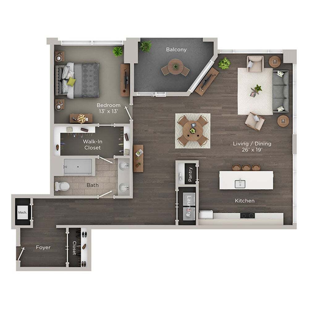 Modelo de apartamento: The Austin1 Dormitorio, 1 Baño, 1257 sq ftDisponible Ahora![]()