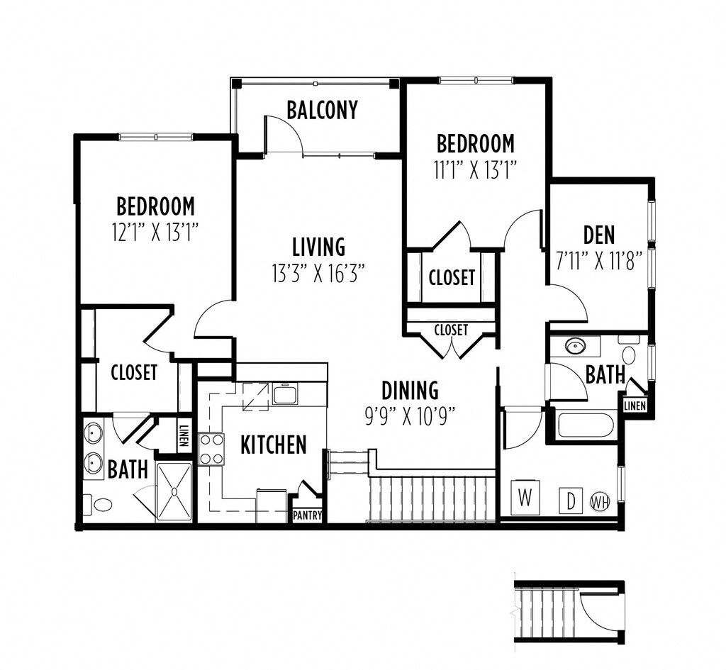 Modelo de apartamento: Harrison1 Dormitorio, 1 Baño, 968 sq ftDisponible Ahora![]()