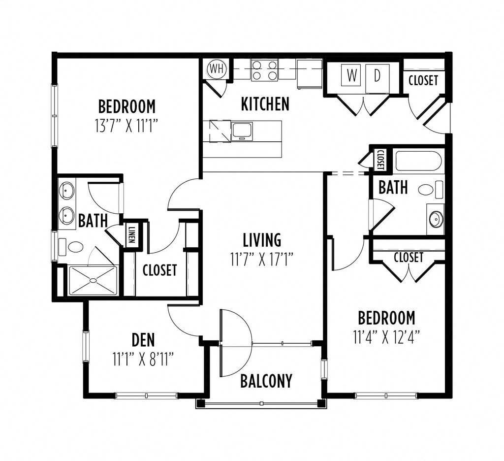 Middleton - Plano 1 Unidad de apartamento: 0203Modelo de apartamento: Middleton1 Dormitorio, 1 Baño, 935 sq ftDisponible AhoraHarrison