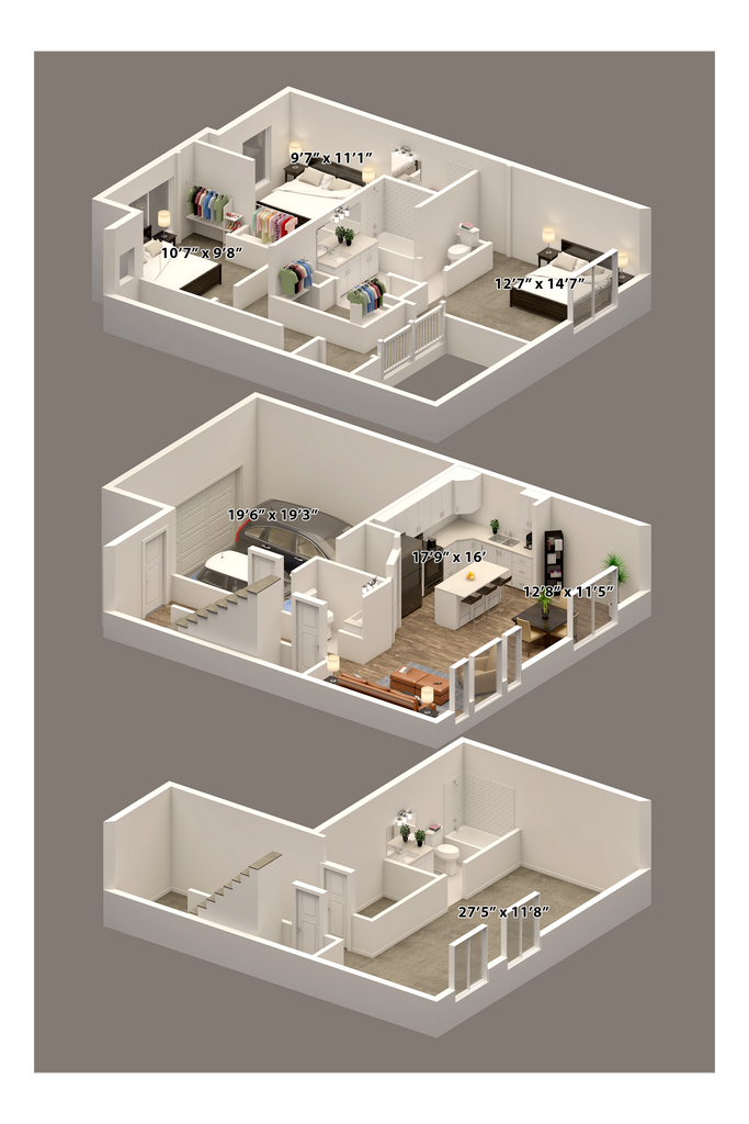 3 Dormitorios, 2.5 Baños, 1419 pies²Disponible AhoraGalería del Modelo