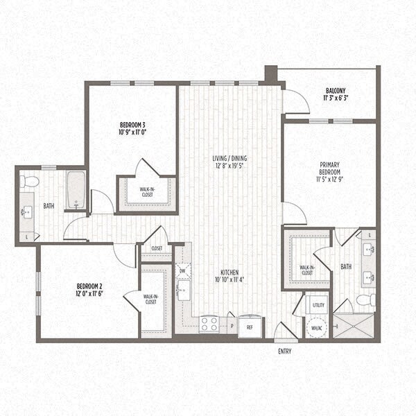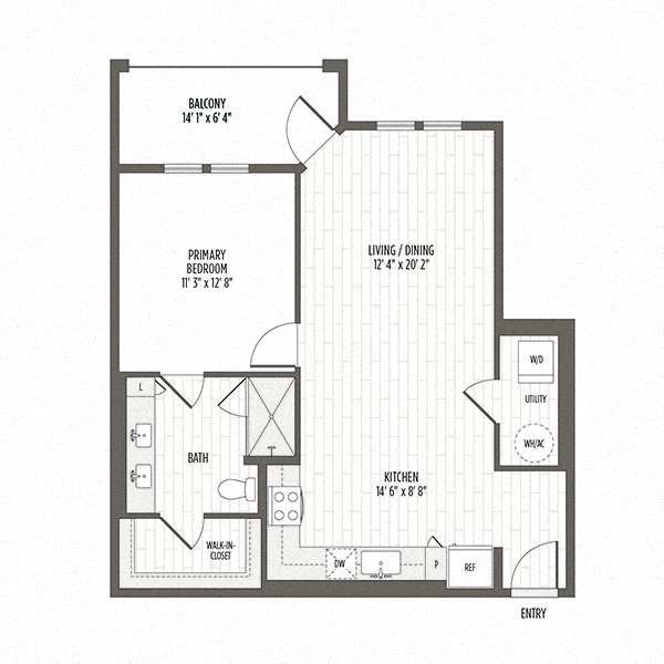 Modelo de apartamento: A1Desde $1,6451 Dormitorio, 1 Baño, 674 sq ftDisponible Ahora![]()