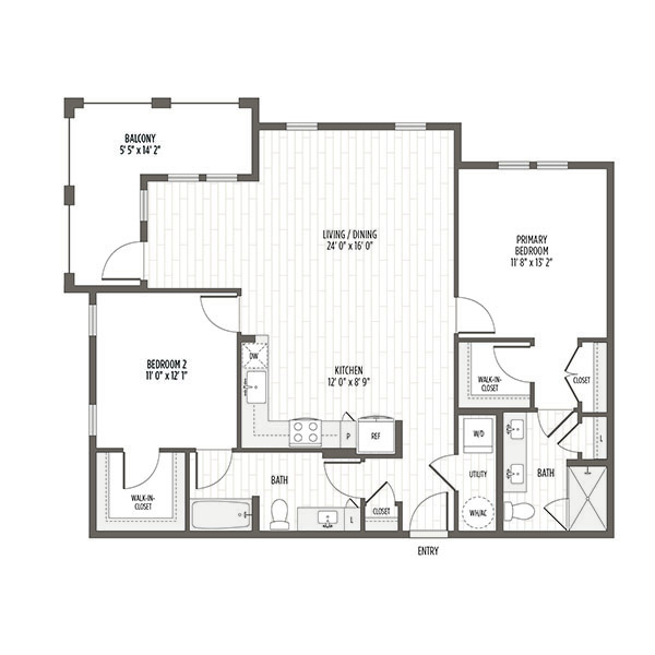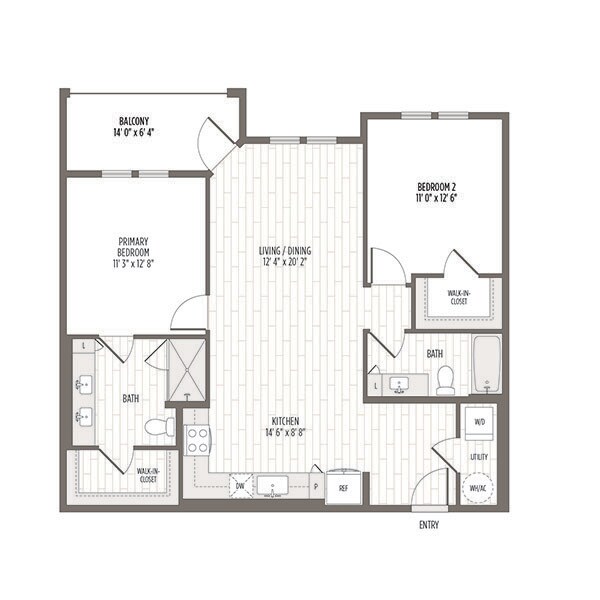 Modelo de apartamento: A2Desde $1,4741 Dormitorio, 1 Baño, 727 sq ftDisponible Ahora![]()