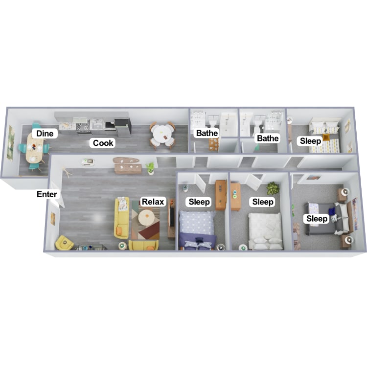 Unidad de apartamento: 1204Modelo de apartamento: 3x2.5 The Calle Ocho 1150sf$1,1003 Dormitorios, 2 Baños, 1150 sq ftDisponible Ahora4 Dormitorios