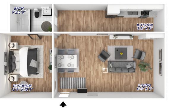 1 Dormitorio, 1 Baño, 750 pies²Disponible AhoraGalería del Modelo