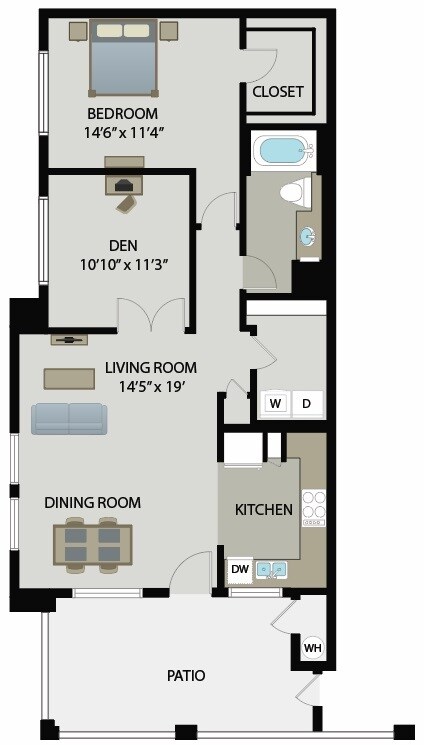 Modelo de apartamento: 1x1DENLlame para Precios1 Dormitorio, 1 Baño, 775 sq ftNo Disponible![]()
