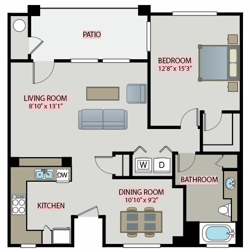 Modelo de apartamento: 1x1ESTLlame para Precios1 Dormitorio, 1 Baño, 861 sq ftNo Disponible![]()
