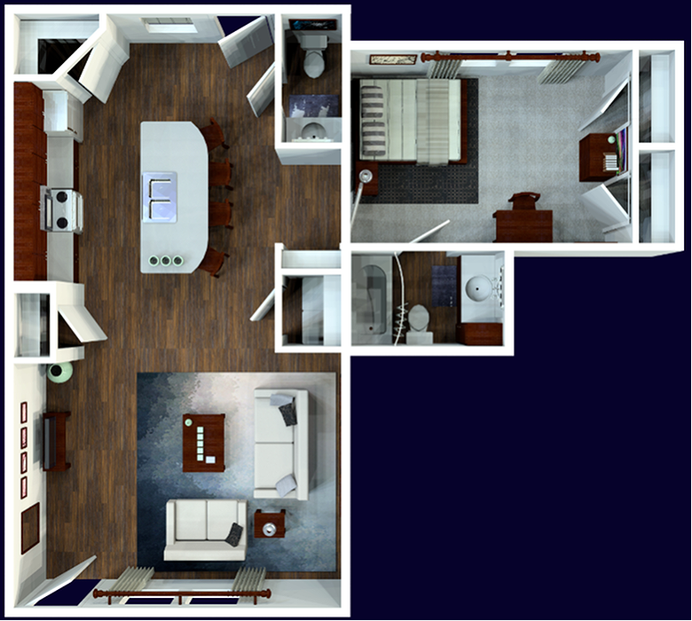 Modelo de apartamento: 1x1 Flat$1,2491 Dormitorio, 1 Baño, 850 sq ftDisponible AhoraLos planos son representaciones artísticas. Todas las dimensiones son aproximadas. El producto y las especificaciones reales pueden variar en tamaño o detalle. No todas las características están disponibles en cada vivienda en alquiler. Por favor, consulta con un representante para obtener más detalles.