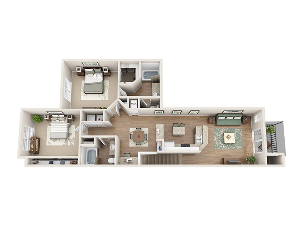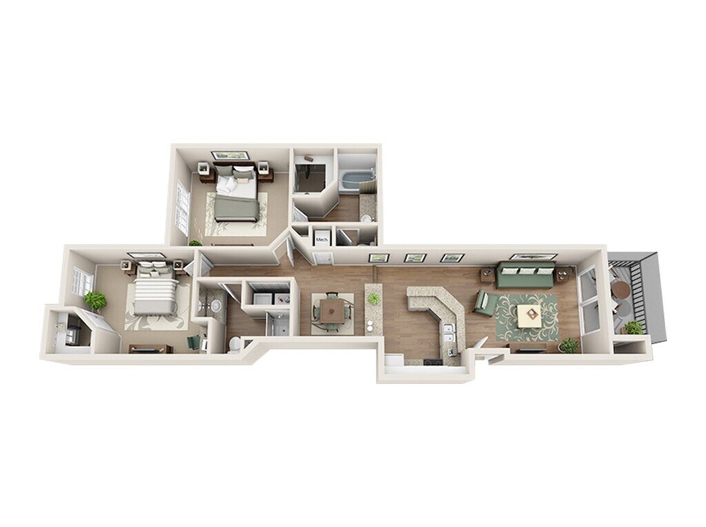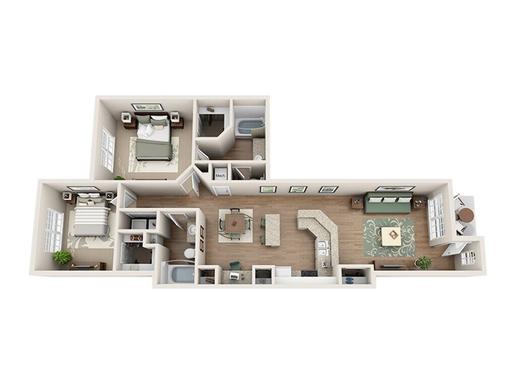 Modelo de apartamento: The JupiterDesde $2,6232 Dormitorios, 2 Baños, 1260 sq ftDisponible Ahora![]()