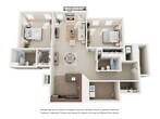 Modelo de apartamento: The SereneDesde $1,9912 Dormitorios, 2 Baños, 1198 sq ftDisponible AhoraLos planos son representaciones artísticas. Todas las dimensiones son aproximadas. El producto y las especificaciones reales pueden variar en tamaño o detalle. No todas las características están disponibles en cada vivienda en alquiler. Por favor, consulta con un representante para obtener más detalles.
