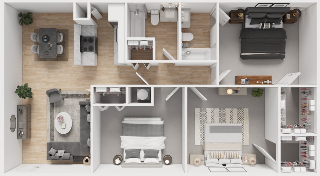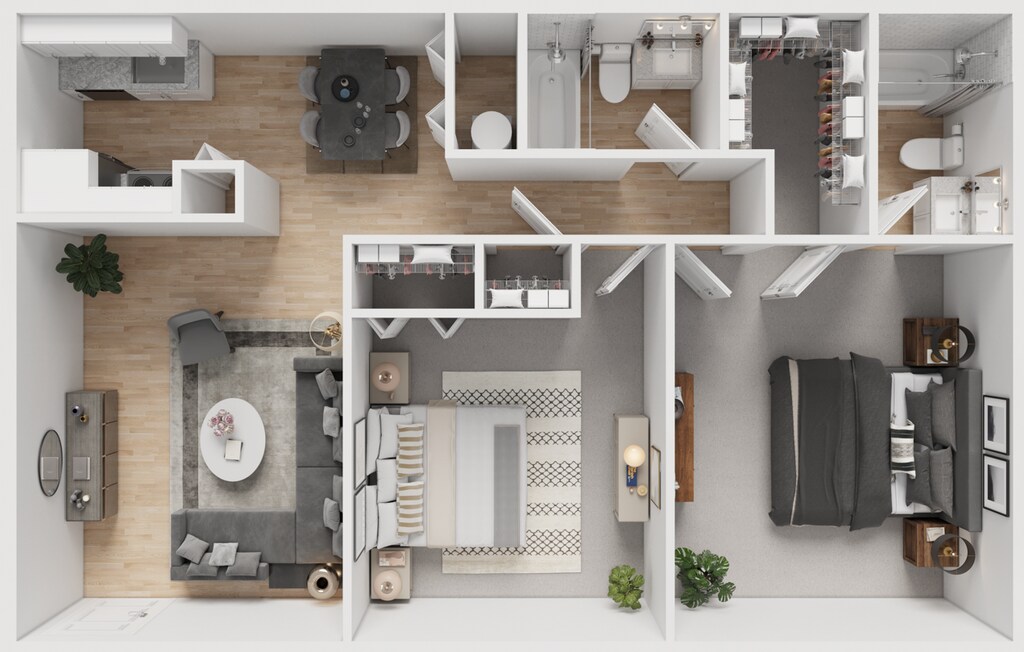 2 Dormitorios, 2 Baños, 957 pies²Disponible AhoraGalería del Modelo