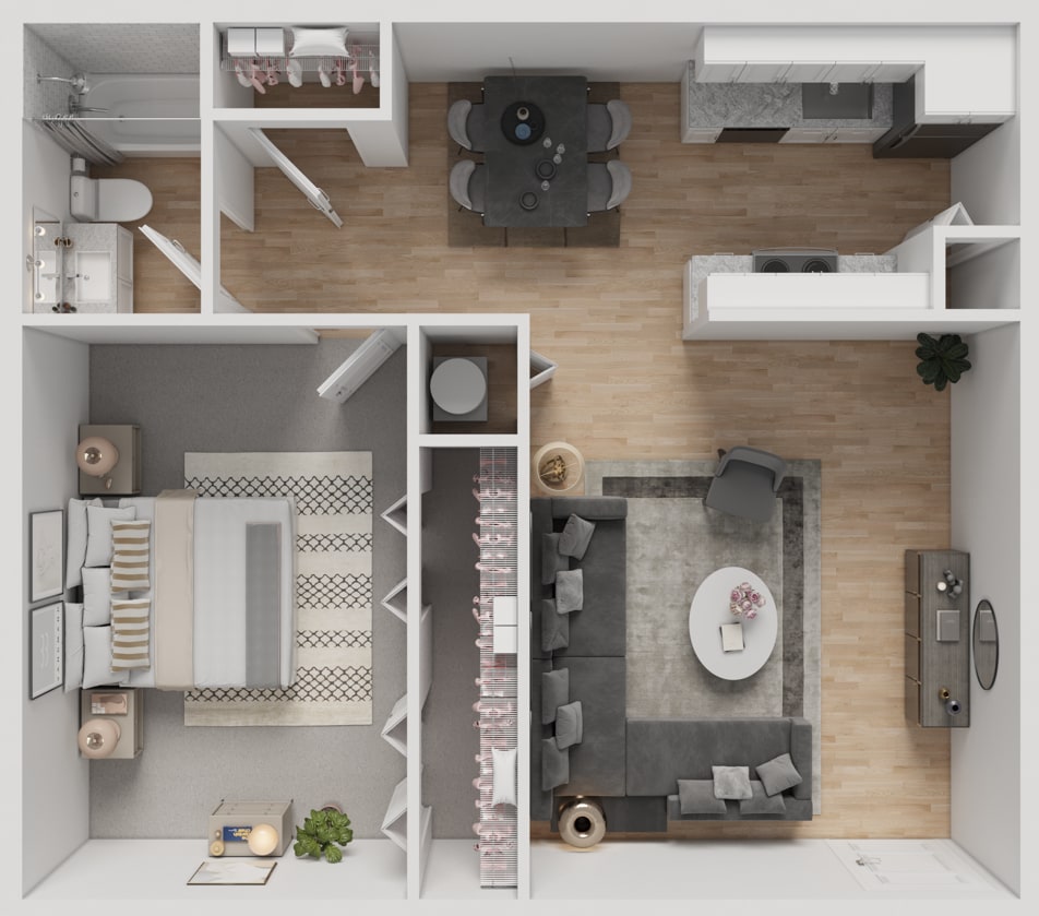1 Dormitorio, 1 Baño, 687 pies²Disponible Oct 31Galería del Modelo