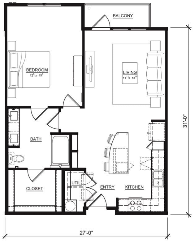Estudio, 1 Baño, 540 pies²Disponible AhoraGalería del Modelo