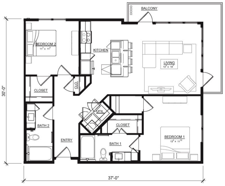 1 Dormitorio, 1 Baño, 768-772 pies²Disponible AhoraGalería del Modelo