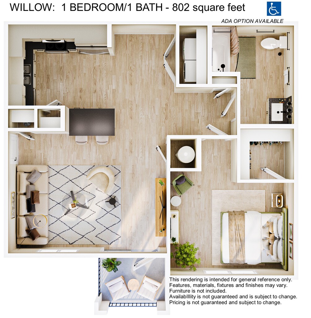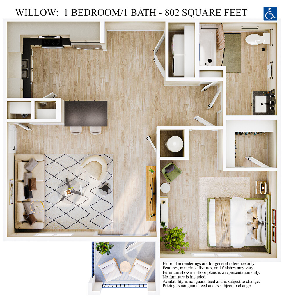 1 Dormitorio, 1 Baño, 802 pies²Disponible AhoraGalería del Modelo