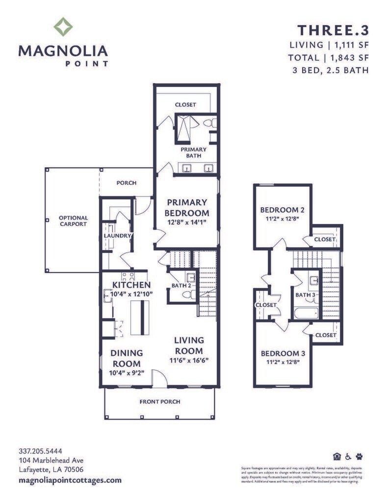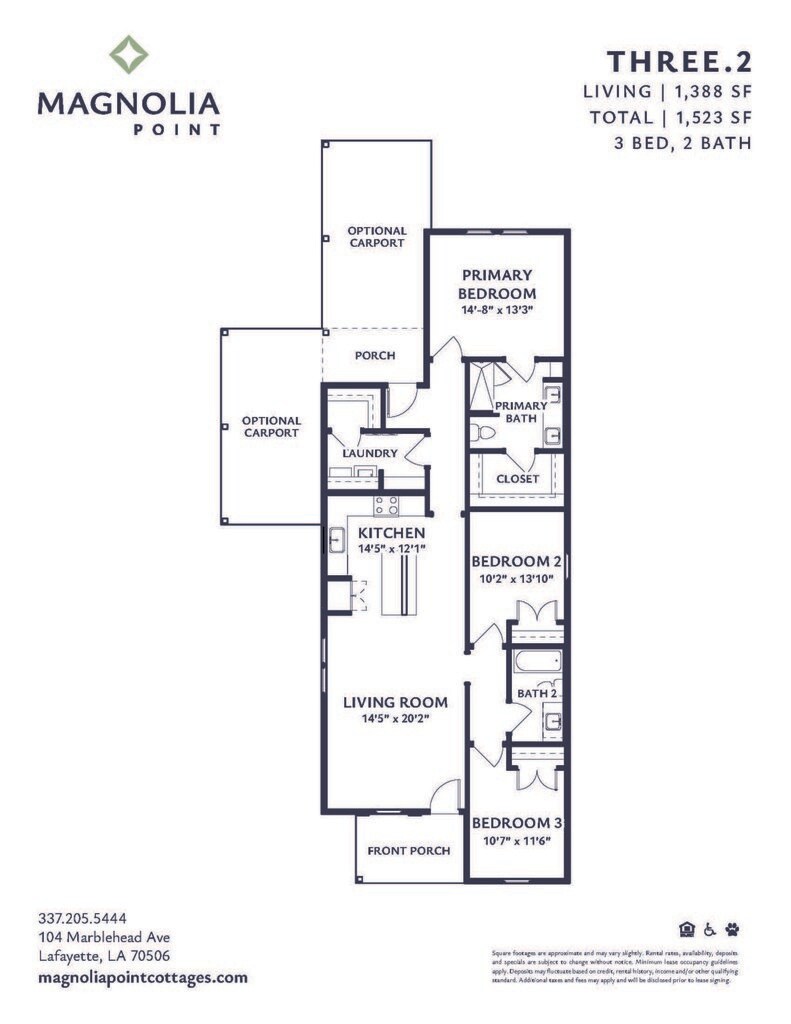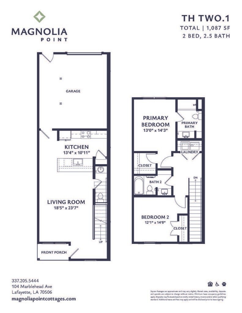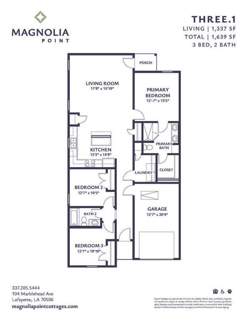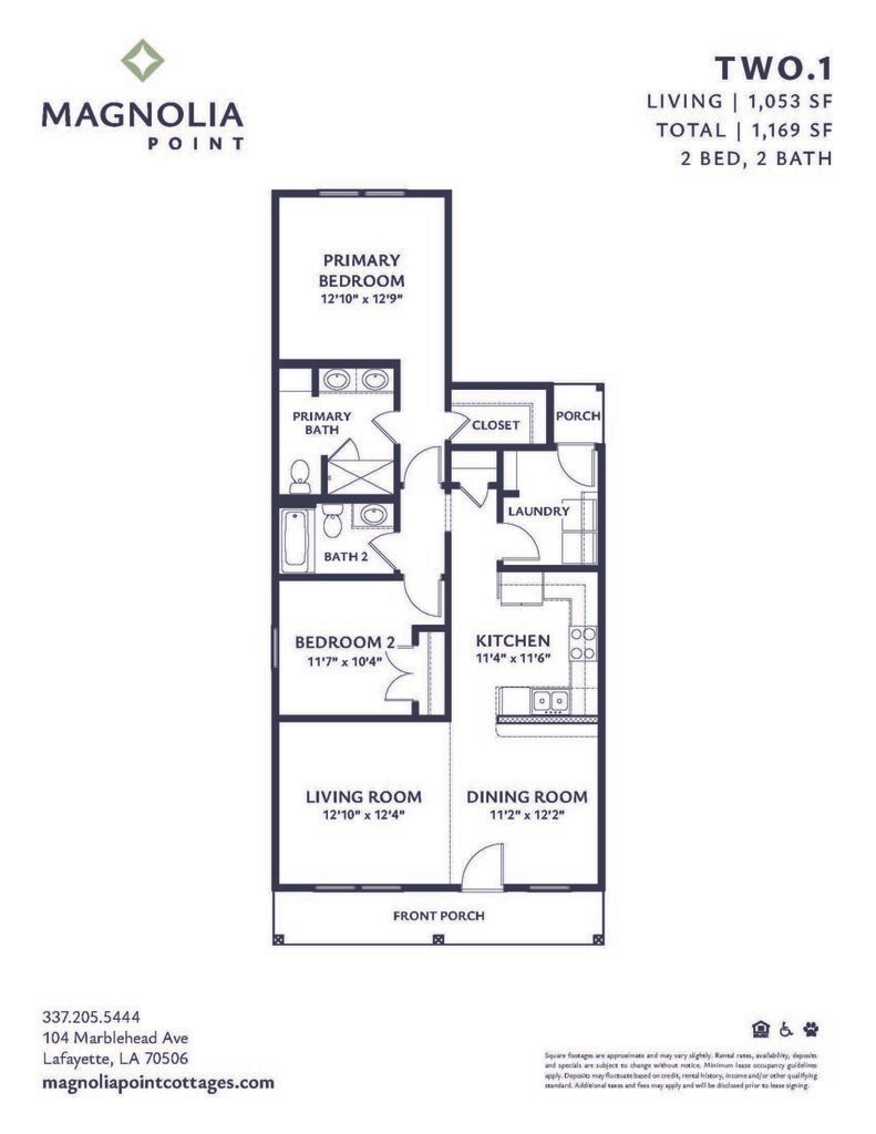 Magnolia Point Cottages & Townhomes se encuentra en el Barrio Central Lafayette Parish y el código postal 70503 de Lafayette, LA. Esta comunidad está gestionada profesionalmente por Bearing Point Properties LLC