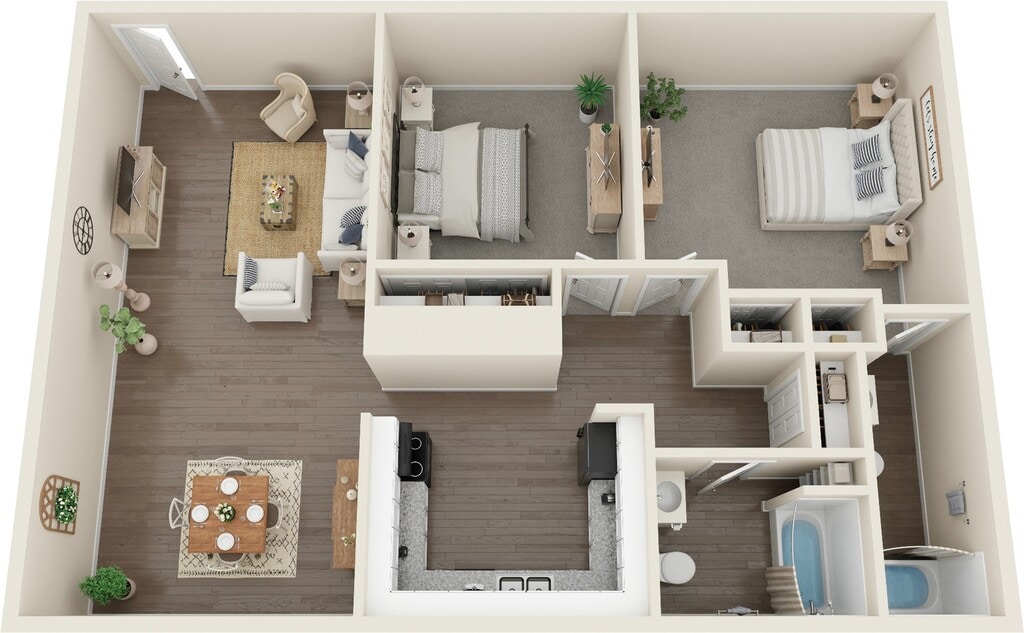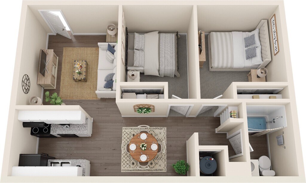 2 Dormitorios, 1 Baño, 850 pies²Galería del Modelo