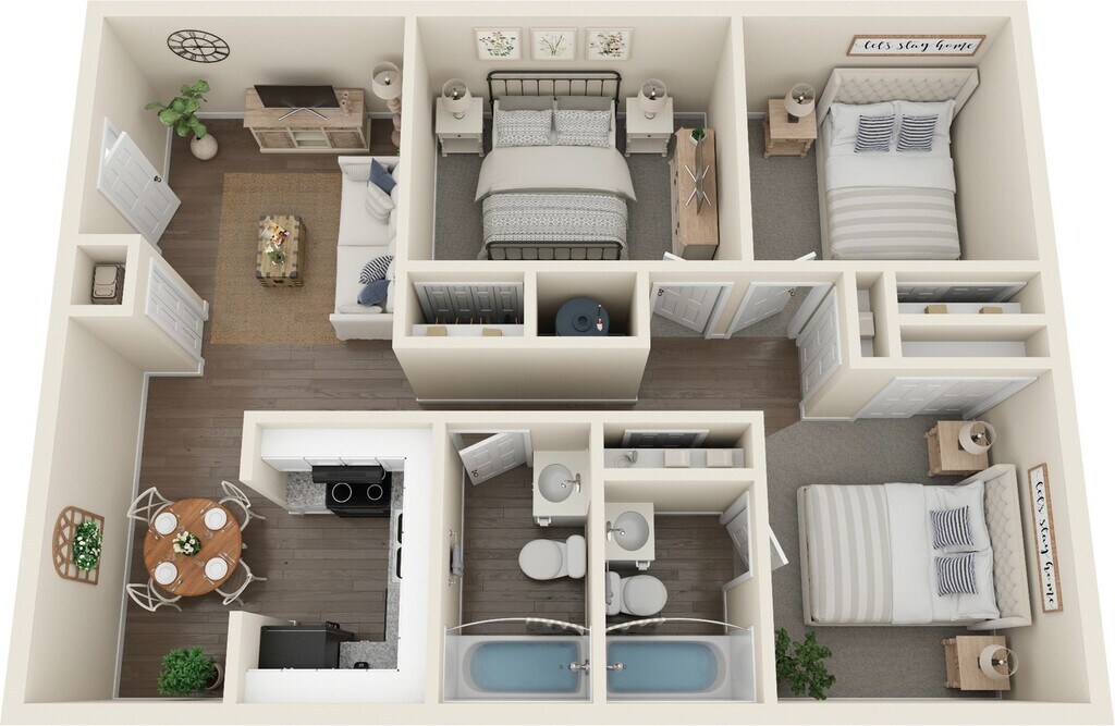 2 Dormitorios, 2 Baños, 1100 pies²Galería del Modelo