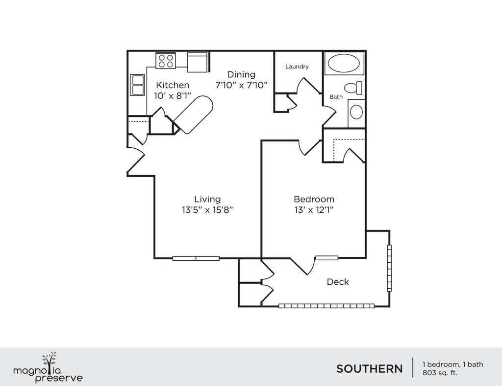 Southern - Plano 1 Unidad de apartamento: 03-305Modelo de apartamento: Southern$1,2251 Dormitorio, 1 Baño, 803 sq ftDisponible AhoraAnise