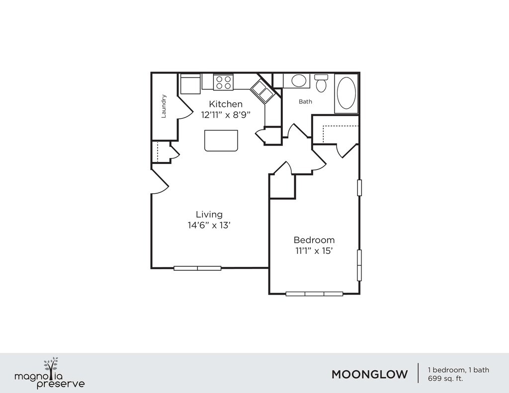 Modelo de apartamento: MoonglowLlame para Precios1 Dormitorio, 1 Baño, 699 sq ftNo Disponible![]()