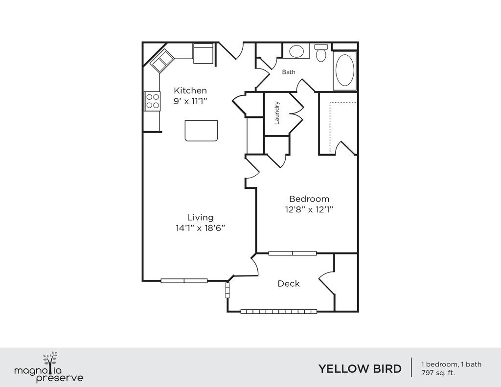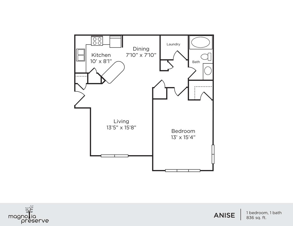 Anise - Plano 1 Unidad de apartamento: 03-404Modelo de apartamento: Anise$1,2501 Dormitorio, 1 Baño, 825 sq ftDisponible AhoraYellow Bird
