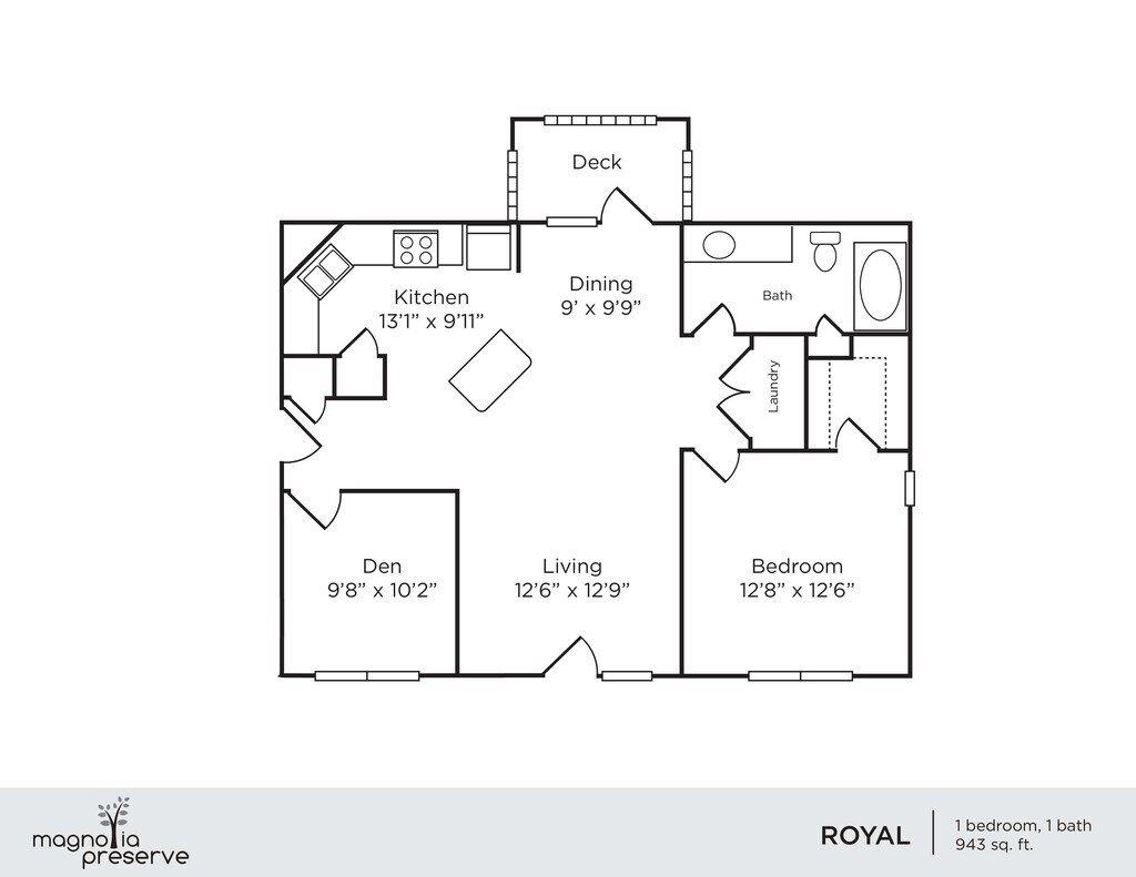 Modelo de apartamento: Royal$1,7251 Dormitorio, 1 Baño, 943 sq ftDisponible Ahora![]()