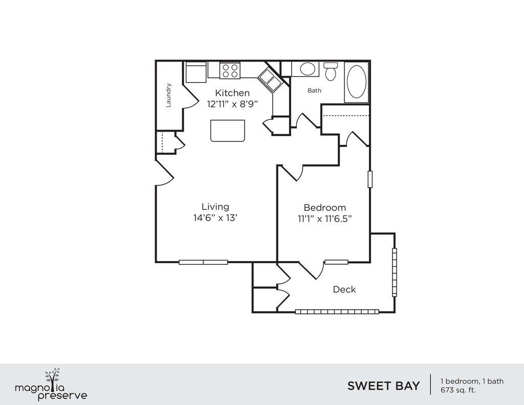 Sweet Bay - Plano 1 Unidad de apartamento: 05-300Modelo de apartamento: Sweet Bay$1,1751 Dormitorio, 1 Baño, 673 sq ftDisponible AhoraSouthern